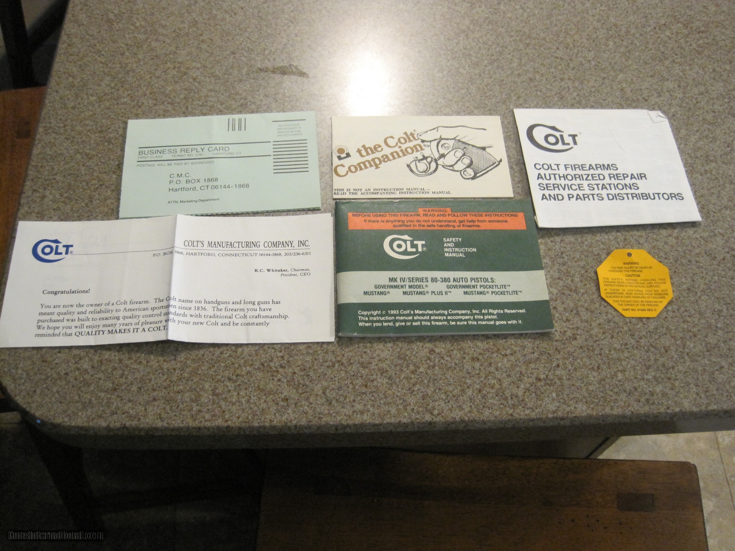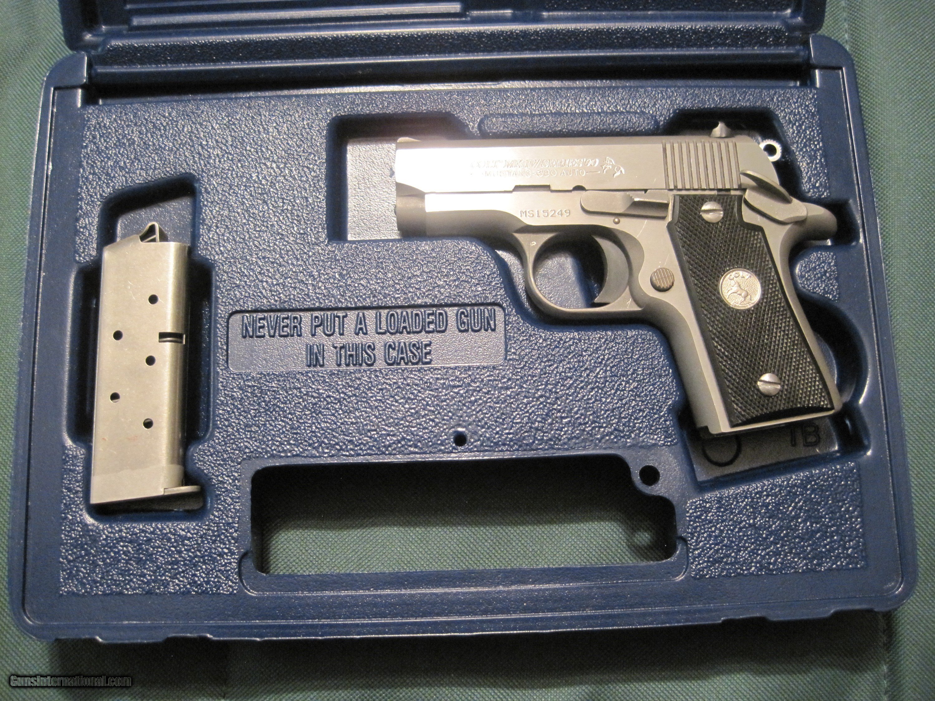 Description: extremely nice original colt stainless 380 mustang. has all paperwork original case and case cover. these are real rare to be so complete from the factory and survived in this condition all these years. has 2.75 in brl and 1- 7 rd mag. has black synthetic grips. requires ffl. no california sales. shipping by usps priority mail will be 25.00. please add 1.60 per 100 dallars if you want insured shipping. make sure it is legal for you to own before buying.payment by usps money order or personal check( will hold till it clears). no charge cards. might accept reasonable offers.email me with any questions MY CELL NUMBER IS 574-709-8448 CALL OR TEXT. thanks steve LAST PRICE REDUCTION TO 775.00 SOLD Handgun Caliber: .380 ACP (9x17mm Browning Short) Manufacturer: colt Model: mustang Serial Number: ms15249 Condition: excellent ++++ Metal Condition: excellent Bore Condition: excellent Action: SEMI-AUTO Finish: stainless Sights: fixed |