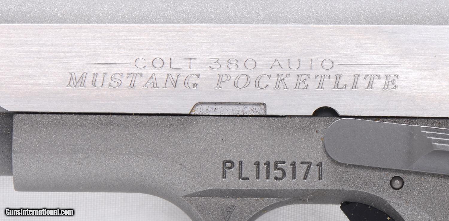 Description: Colt Mustang Pocketlite .380 pistol, stainless steel/alloy made between 1991-96. This pistol appears unfired and it is the original box with all paperwork. This is a very desirable “original” Mustang that is ready for a collection and/or for conceal carry. SOLD |