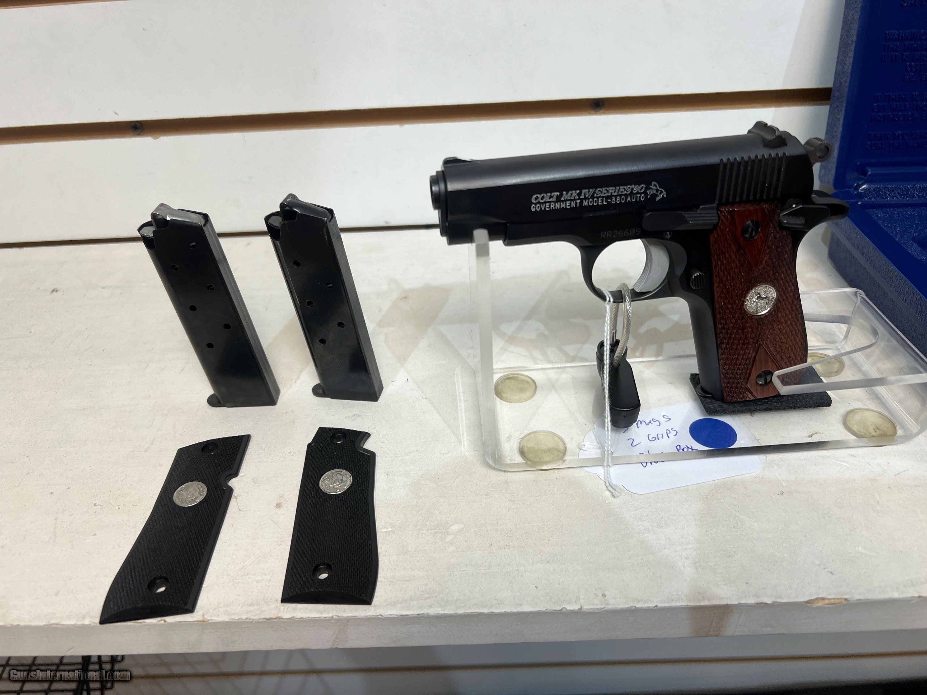 Used Colt Government 380ACP Colt MK IV/Series 80 3 Mags 2 pair of Grips (Black/Brown)