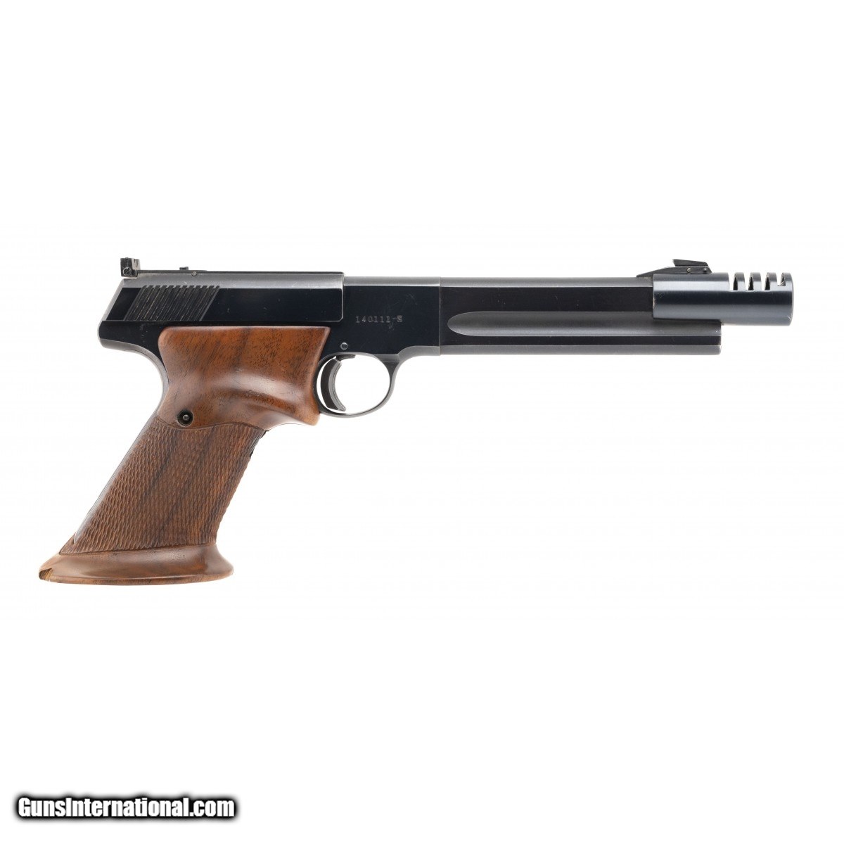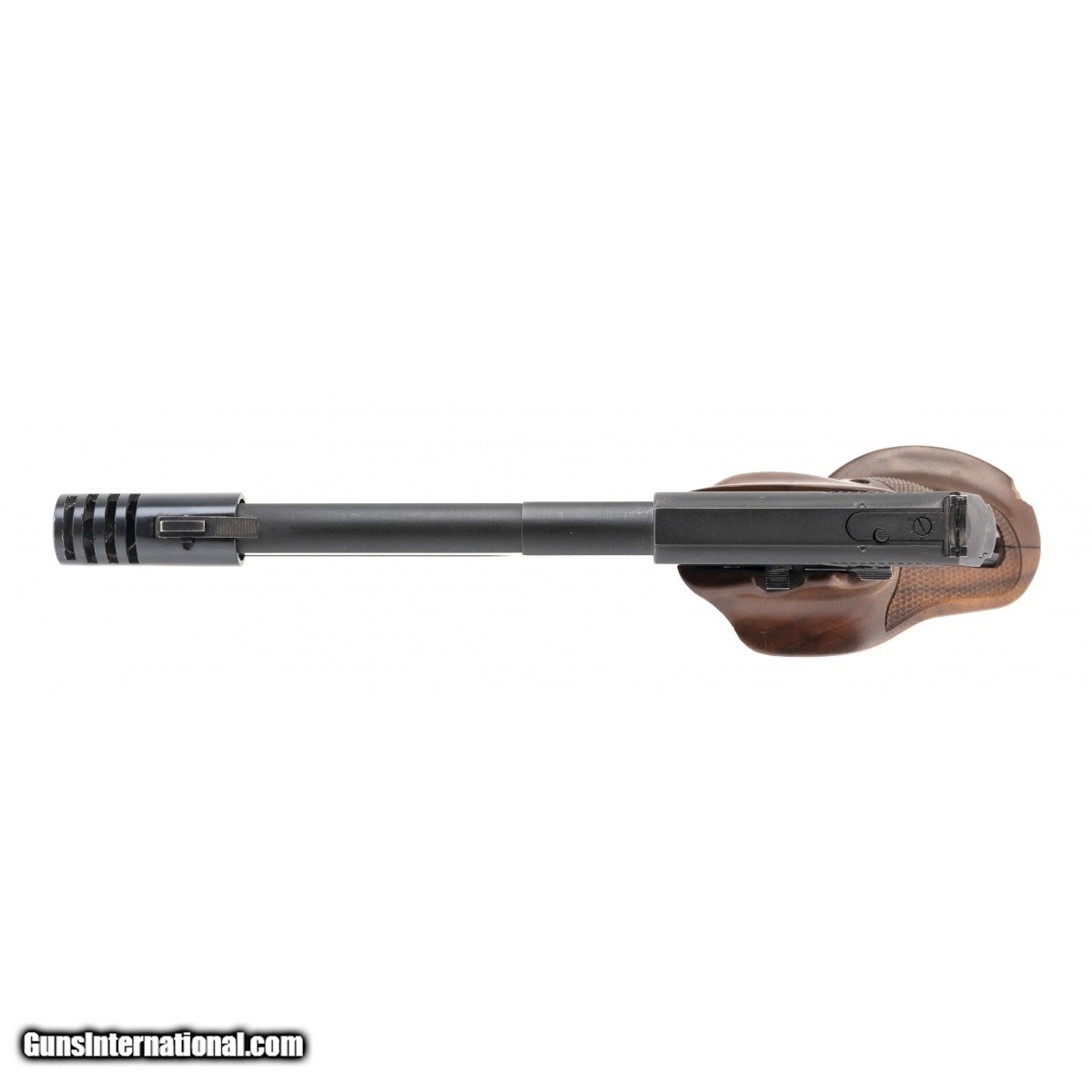 Description: " 6"" Match Target made in 1954. A custom muzzle brake has been added. The grips are oversized walnut target grips. The finish shows some wear, overall very good condition. SOLD |