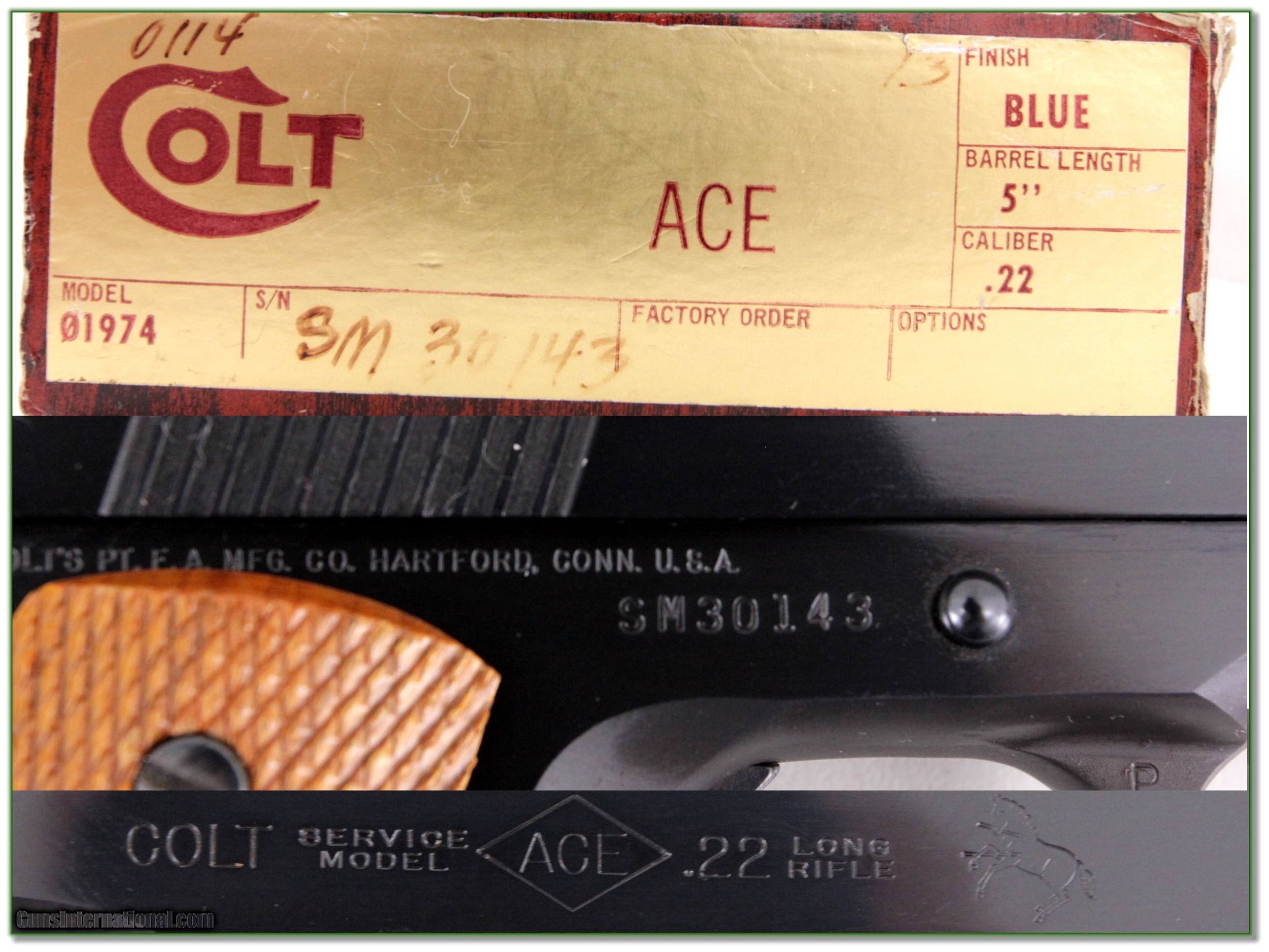Description: Collectors, this a Colt ACE Service Model 22LR. It is as new and if fired, not more than a few rounds. It comes as seen as new in box with all papers. I am selling this one on consignment and as such lay-a-way can’t be used. It does of course have the standard 3-day inspection. Shipping and insurance is $49. Please email me with any questions or larger pictures. (Consign your quality firearms with Shooting Investments for only 12%! Let me know if you have any you would like to sell!) 18-0603 Payment: Payment is by Money Order, Cashiers Check or Personal Check. I can now also accept MasterCard and Visa with a 3% convenience fee. PayPal can be used for some items but never firearms. Please let us know if you would like to pay via PayPal. Shipping: The shipping charge will be listed in each description. It is $39 for most long guns and $29 for most handguns. Some heavy guns or those insured for over $2000 will be higher. Shipments to Alaska and Hawaii are higher because air shipment is required. Most firearms are shipped on Tuesday and Thursday and usually in 5 days of receipt of payment. We package all shipments carefully and insure them. For long guns you can purchase a new Plano case for $19. They now cost us $22 when buying 100 at a time. Optics are shipped Priority Mail and most other non-firearm shipments are shipped First Class. Returns: Our return policy is simple. If for any reason you are not pleased with your purchase, you may return your item for a full refund of purchase price. Ammunition cannot be returned. It is important to us that you are happy. Guns cannot be fired or dissembled before returning them and they must be returned in the same condition as received. Notification of a return must occur with-in 3 days of receipt at your dealer. Shipping, convenience and dealer fees are not refundable and are the responsibility of the buyer. Lay-a-way: If needed, we offer a 60 day lay-a-way option on most firearms. It is 1/3 now, 1/3 in 30 days and 1/3 in 60 days. Lay-a-way firearm sales are final and if not completed the first payment cannot be returned. Consigning your firearms with Shooting Investments: We will help you get top dollar for your firearms. While most local guns shops charge 20% or more, our fee is only 12% with a minimum of $75. At your local gun shop it might take months to sell. Selling on-line provides instant access to thousands of interested buyers. You won’t find any other on-line dealer willing to sell your firearms for only 12% or listing every gun on 3 separate s. Selling through an House typically costs the seller 15% and the buyer an addition 15% (so 30%) and you have to wait several months to sell and longer to receive funds. If properly priced, we will sell your firearms in a few weeks. Send us an email or give us a call and we’ll explain how easy it is for you to get top dollar. Trading: Trading for use is really just buying your gun to re-sell. If you have a gun you want to trade, please email a picture and we will let you know what we can give or it. You will always get more if we sell it for you on consignment. Help for California Buyers: We are happy to ship to California. It is the buyer’s responsibility to make sure any item you buy is legal in your state. We are also happy to help with your purchase of a firearm from someone other than us. If you see a gun you would like to buy but the seller can’t or won’t ship to California they can ship to use and we’ll then ship it to your California dealer. The cost for this service is only $30 + shipping. Let us know if we can help! SOLD |