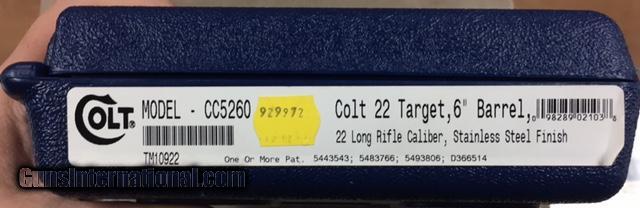 Description: This Colt .22 Auto Pistol with 6 inch stainless barrel remains in the original box with all paperwork, extra magazine which came with the gun, etc. Condition is just about like new and if it was fired it was only test fired. This is the way we like to find 'em and I would say it would be very difficult to improve on this pistol. We see many more 4 inch guns than this 6 inch, and bore and chamber are perfect. SOLD |