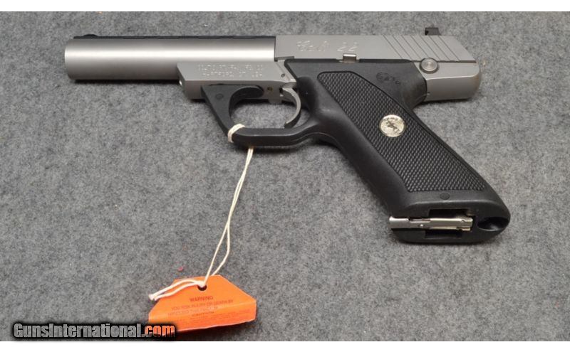 Description: SOLD Caliber Info: .22 Long rifle. Chambers: Semi-automatic pistol. Metal Condition: Very good. Wood Condition: Very good. Bore Condition: Very good. Barrels: 4-1/2" stainless steel barrel. Triggers: Single metal trigger. Stock: Checkered black synthetic grips with silver Colt medallion inlay. Weight: 34oz. Sights: Factory iron sights. Extras: Comes with a box and a display case. Item Location: Wichita, KS |