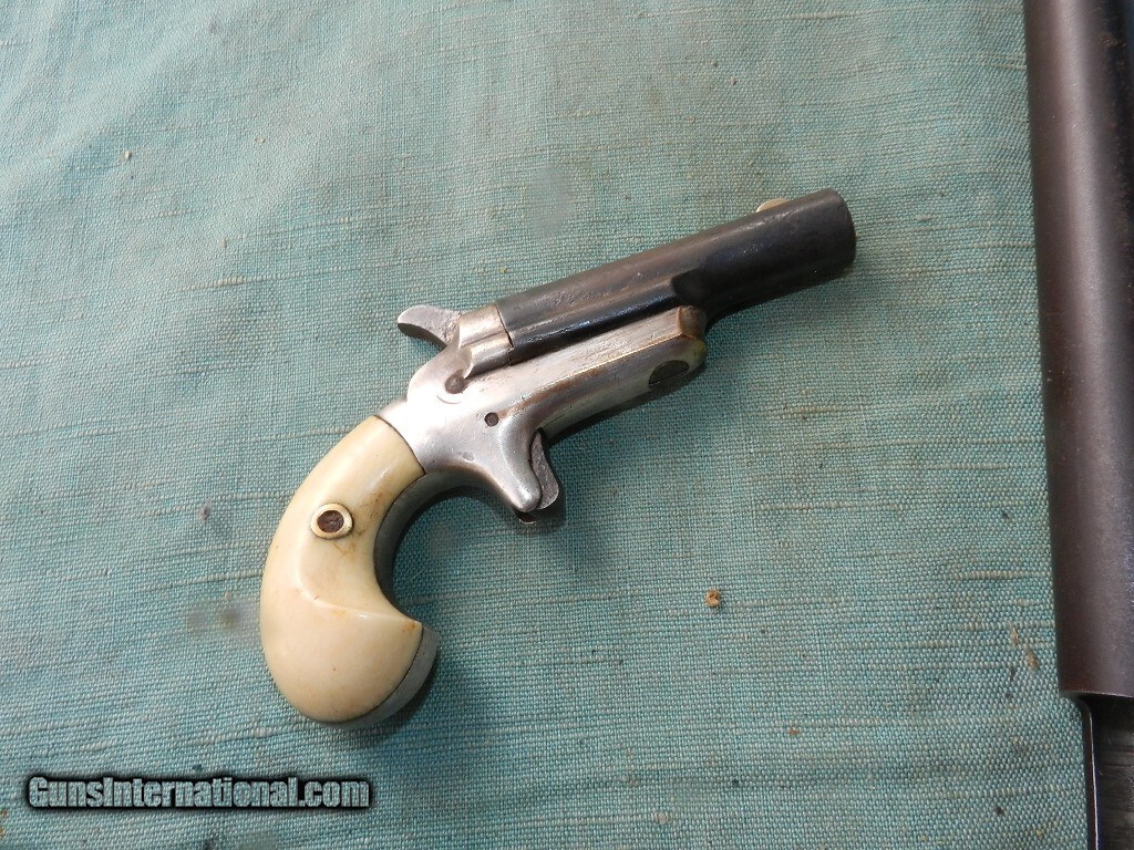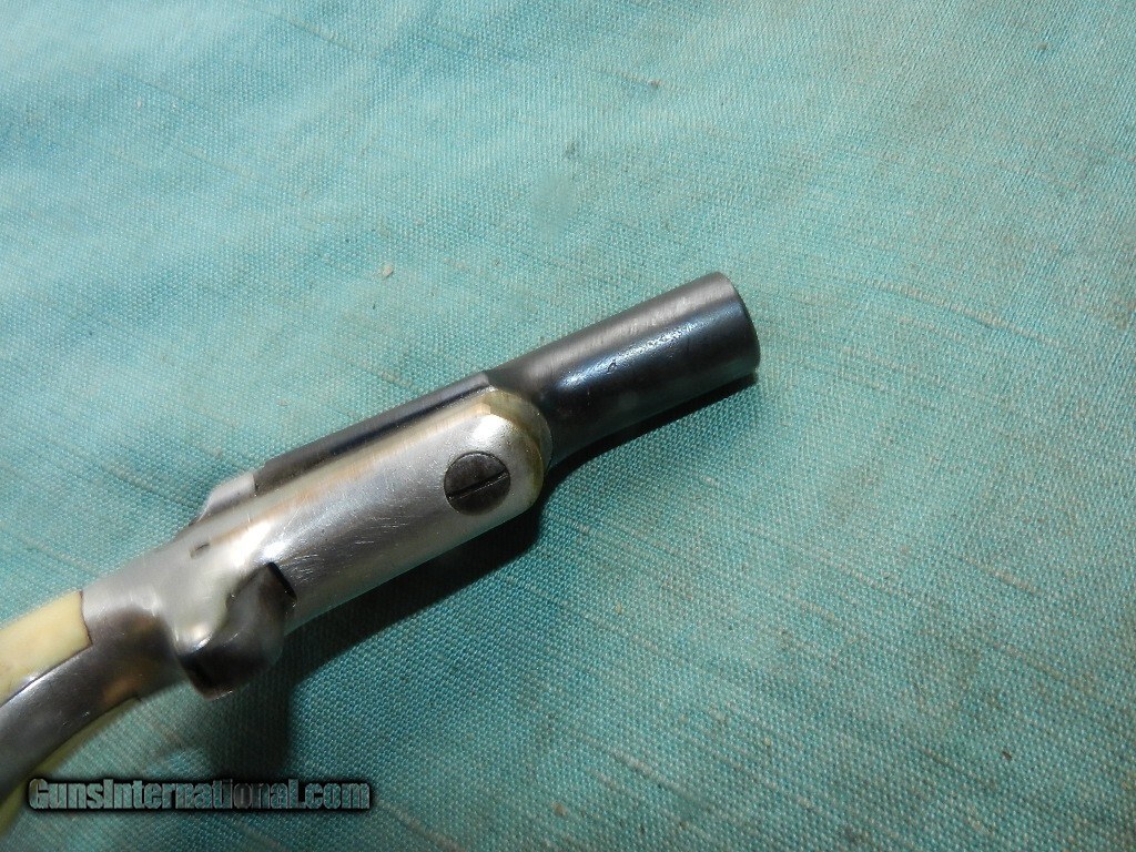 Description: Clean working Colt ole'Western single shot .41 cal. rim fire derringer with a 2 5/8"round barrel with sgrong rifling , clean with a couple spots of shallow corrosion. The bafrrel was blue and the frame was nickel with most of it's finish and wear to high poinrs only The action locks up tight and hammer workes well. Grips appear to be natural ivory with age patina and complete with no damage.\ When buying a gun always have it examined by a competent gunsmith before shooting. To buy a gun from me you must get a direct email for me, with details, and shipping cost. We don’t have a web site .I prefer money orders or a check. Item ships when funds come in. I try to keep guns affordable, which means I make less money than most dealers. You won’t get altitude sickness, or nose bleed, with my prices! I consistently have the best selection of older guns If you attempt to buy, you must still contact us for details . Best to email to buy. Sometimes a local person can stop buy and purchase before the gun is removed. Sometimes not home to get calls. Some guns are required shipment to a gun dealer near you for a transfer to you when it arrives. Otherwise many older or black powder guns ship to your door. With the widest selection of older guns at great prices, We don’t have a store, and sell on the internet only. I’m easy to get along with. Thank Yo Antique: Yes Price: $795.00 Contact Seller |