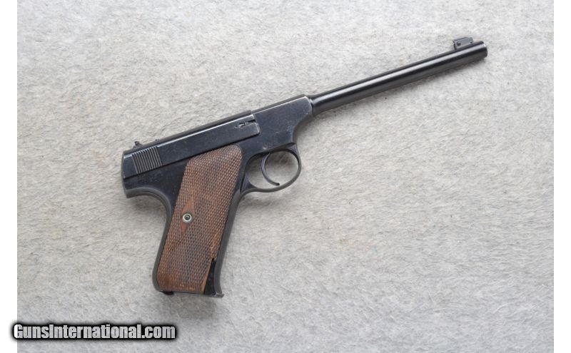 Description: SOLD Manufacturer: S/N 29738 Caliber Info: .22 Long Rifle Chambers: Semi-Auto 10 round magazine. Metal Condition: Good. Light wear, handling marks and very minor freckling. Wood Condition: Grips are good with light wear. Bore Condition: Very good. Barrels: 6.5 inch blued. Stock: Diamond checkered walnut. Weight: 28 oz. Sights: Blade front. Notch rear. Item Location: Richfield, WI |