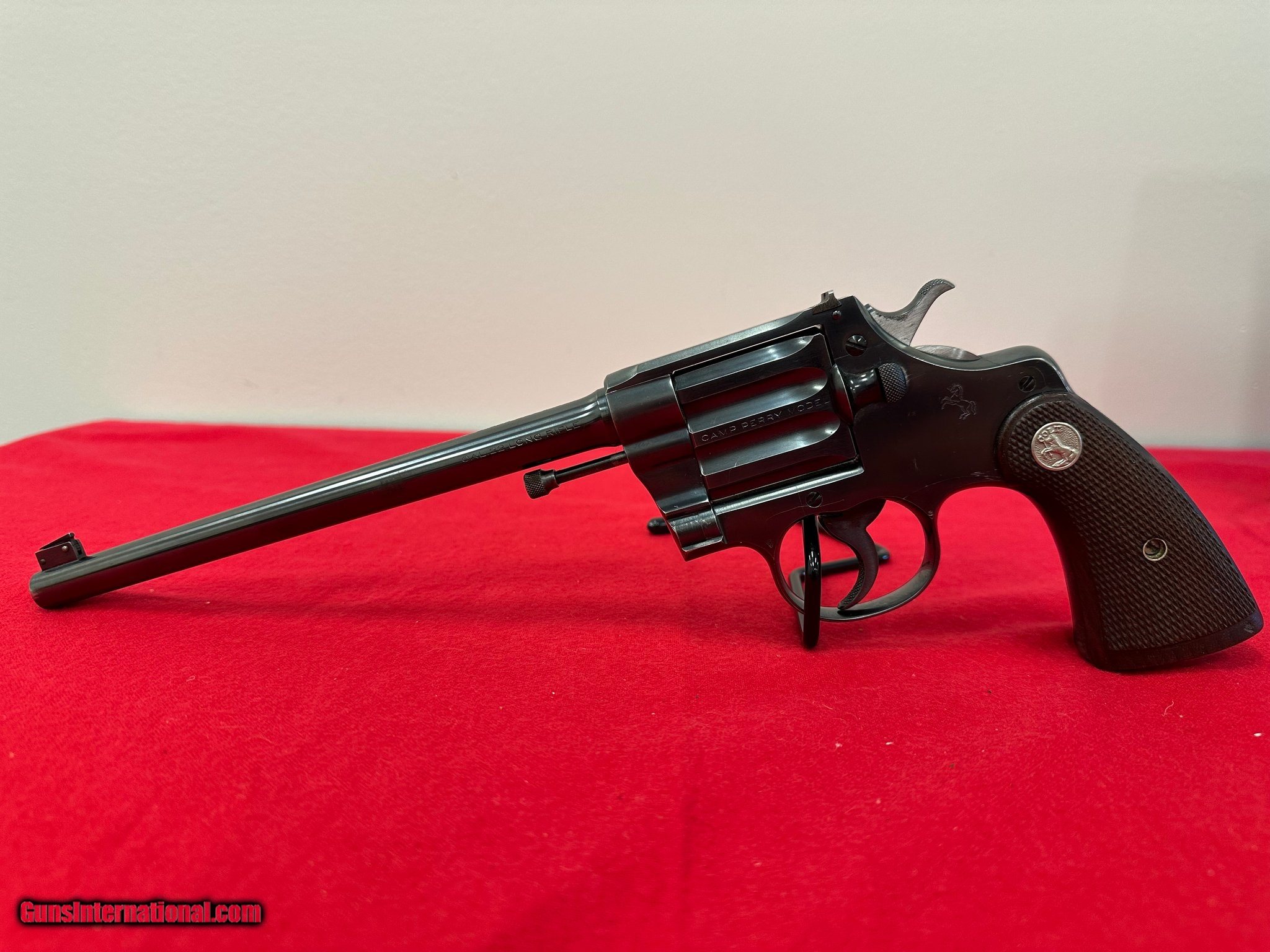Description: Guns Listing ID: 1387112 Make: Colt Model: Camp Perry Serial Number: 1559 Year of Manufacture: 1931 Caliber: .22 Long Rifle Action Type: Single Action, Single Shot, Rotating Breech, Rimfire Pistol Barrel Length: 10” Sights / Optics: The front sight is a Patridge blade pinned to a base fixed to the front of the barrel. The front sight is adjustable for elevation. The rear sight is a square notch dovetailed to the rear of the top strap, adjustable for windage. Stock Configuration & Condition: The grips are two-piece checkered walnut with silver-colored Colt medallions. The grips have a few light nicks and scratches. The checkering is well-defined. There are no chips or cracks. Box, Paperwork & Accessories: None. SOLD Manufacturer: COLT Model: Camp Perry Caliber Info: .22 LR Condition: Used - Non-Certified Barrels: 10 BARREL |