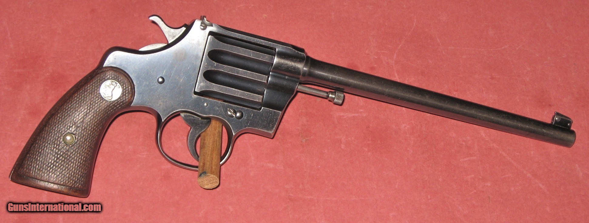 Description: Colt Camp Perry single shot 22 long rifle target pistol.Built in 1932,this pistol is one of only 2500 Camp Perry pistols built.This on has a 10" barrel with a mint bore.the gun is in excellent all original condition.It retains 98% of the original blue finish.It has an outstanding trigger and is very accurate.A fine collectible handgun and one that is fun to shoot.C&R eligible. SOLD Curio/Relic: Yes Manufacturer: Colt Model: Camp Perry Target Serial Number: 2090 Caliber Info: 22 long rifle Metal Condition: excellent Wood Condition: excellent Bore Condition: mint Action: single shot Manufacture Date: 1932 |