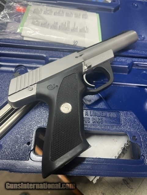 Description: Guns Listing ID: 530733 Stainless steel model with 4.5\" barrel. Made in 1994. Excellent condition with box and extra mag. SOLD Manufacturer: COLT Model: Colt 22 Caliber Info: 22 LR Condition: Used - Non-Certified Barrels: 4.5 BARREL Finish: STAINLESS AND BLACK |