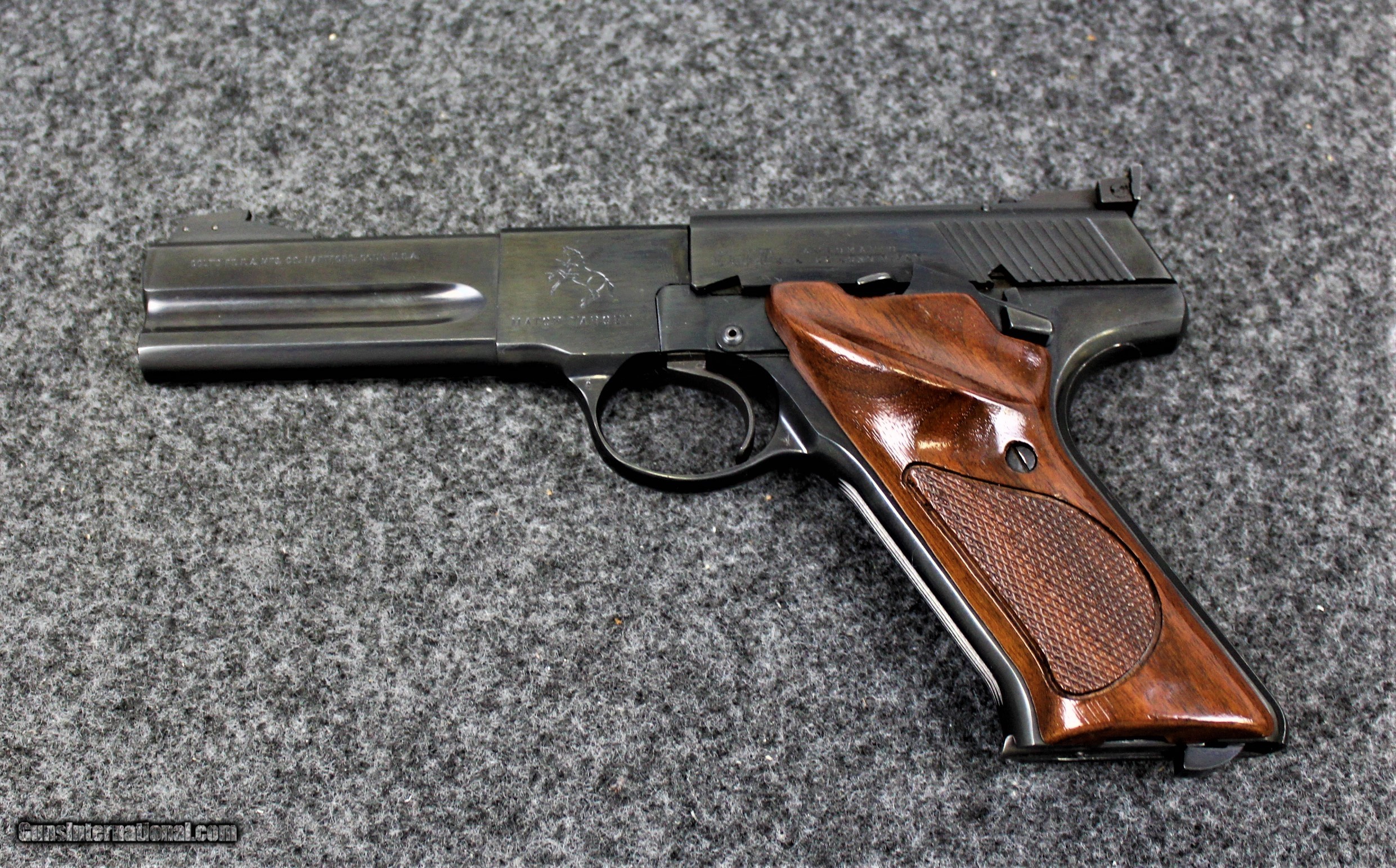 Description: Here is a well kept Colt Match Target pistol in caliber 22 Long Rifle. I have rated this firearm at 95 percent condition. According to Colt Serial number lookup it appears this firearm was produced from 1976 to 1977. SOLD Handgun Caliber: .22 Long Rifle Manufacturer: Colt Model: Match Target Serial Number: 301059S Barrel Length: 4 1/2 Inch Condition: Very Good Metal Condition: VERY GOOD Wood Condition: Very Good Bore Condition: Very Good Action: SEMI-AUTO Triggers: SINGLE Finish: Blued Weight: 2.25 Lbs Item Location: H & H SHOOTING SPORTS 400 SOUTH VERMONT SUITE 110 OKLAHOMA CITY OKLAHOMA 73108 PHONE NUMBER 405-947-3888 |