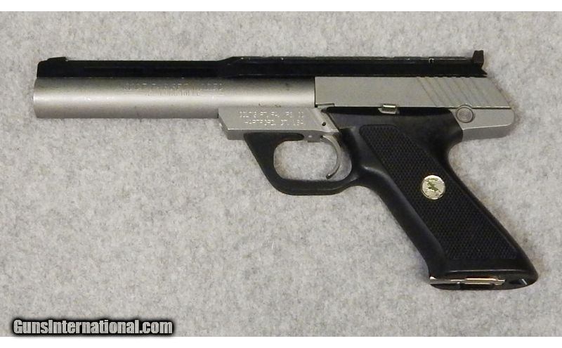 Description: Colt Model 22 pistol. This semi-automatic pistol is chambered in .22 Long Rifle and has a ten round magazine capacity. This pistol features a 4.5"barrel, vent rib barrel, one-piece grip and adjustable rear sight and a front fixed blade with intergraded weaver sight base. The bore is bright and shiny with strong rifling. The pistol has handling marks and tiny scratches throughout the pistol due to the satin stainless finish. .22 Long Rifle SOLD Chambers: Semi auto. Metal Condition: Good with light scratching. Wood Condition: Good. Barrels: 6" barrel with vent rib. Triggers: Single trigger. Sights: Adjustable rear and blade front. With weaver base. Item Location: Acworth, GA |