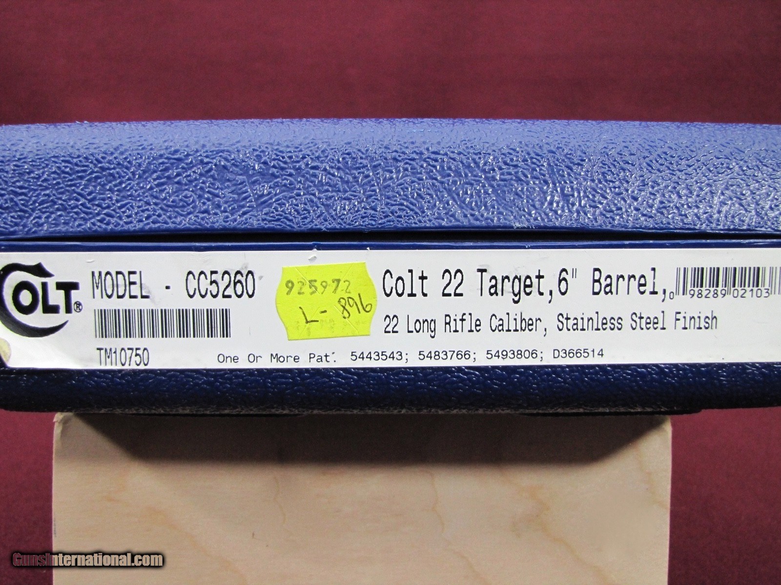 Description: I have for sale a very nice, lightly used, Colt Model CC5260 Target with a 6.0” bull barrel; Matte Stainless Steel Finish, Weaver Style Mounting Rib, Stainless Steel, Black Composite Polymer Grip with Silver Colt Logo, Adjustable Rear Sight; Cocked Indicator, Cross Bolt Safety, Original Case and Papers; Stainless Steel Finish, comes with 2 clips. Price is $400 plus $35 shipping to your FFL. As always there is a three day non-firing inspection period with the buyer paying shipping charges if returned. SOLD Manufacturer: Colt Model: CC5260 Caliber Info: 22 Rimfire Condition: Excellent Barrel Type: 6 Inch Bull Barrel Action: Semi Auto Extras: Manual and Paperwork Case: Colt Plastic |