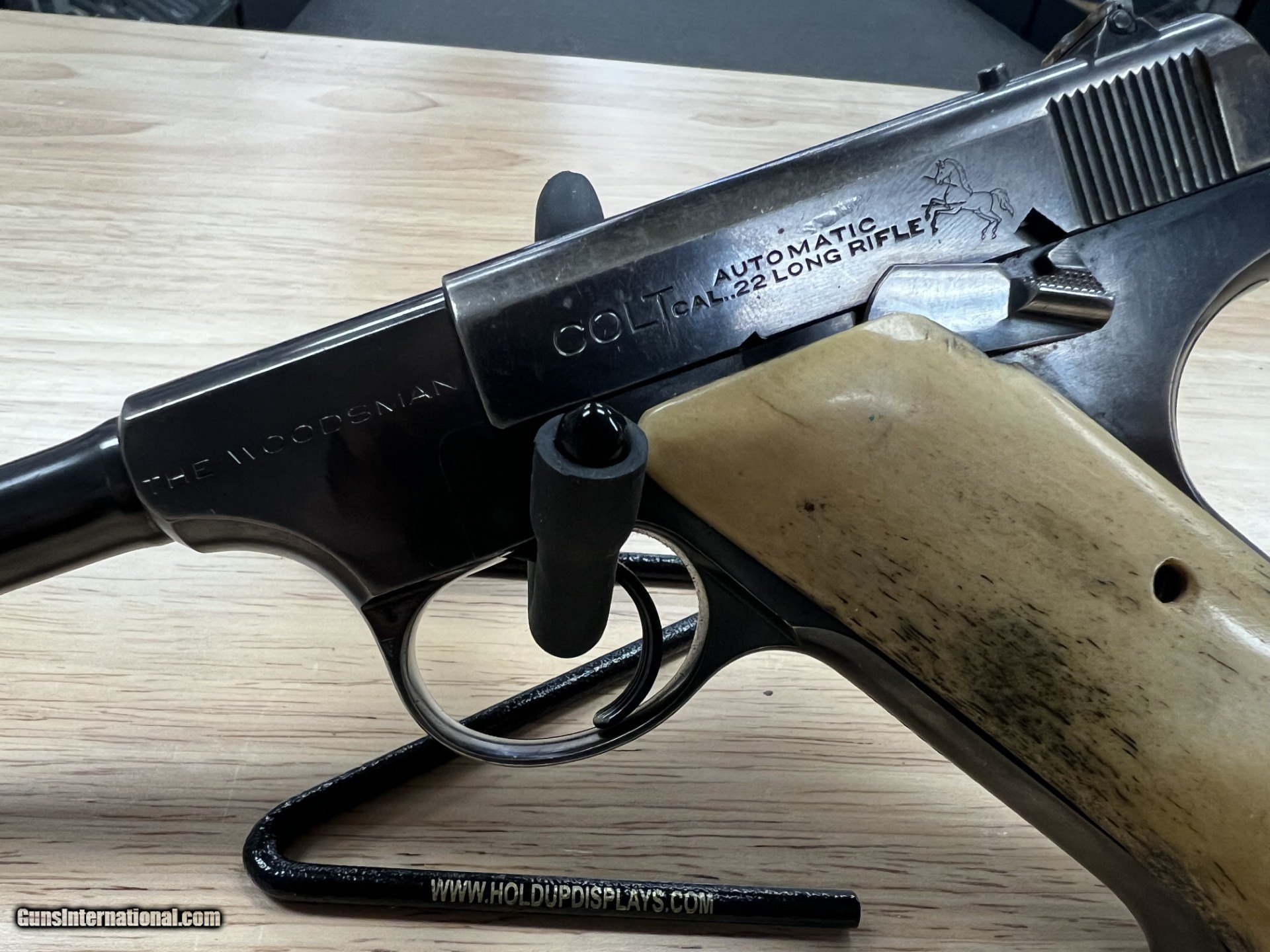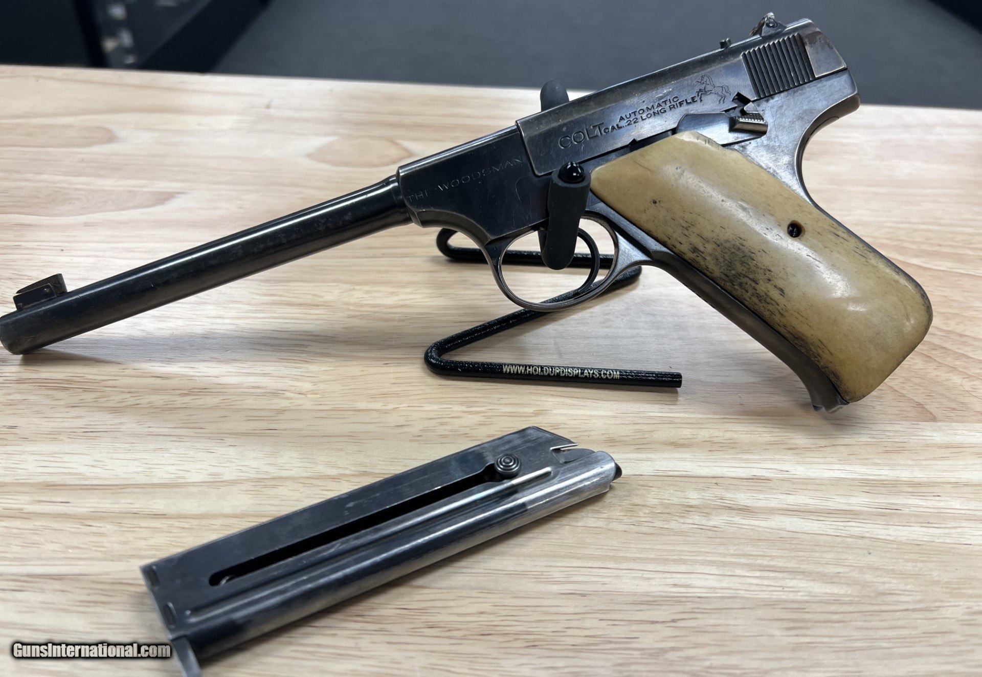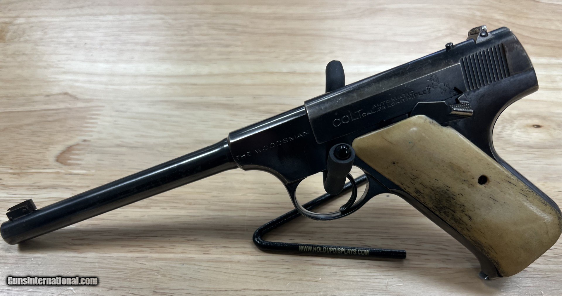 Description: Guns Listing ID: 576349 SERIAL #74844 1930 PRE-WAR COLT WOODMANS IN .22LR (1) MAG, NO BOX. LOOKS LIKE BONE (?) GRIPS BUT CANNOT BE 100 CERTAIN. GREAT CONDITON AND STILL A SHOOTER AT 95 YEARS OLD. Manufacturer: COLT Model: WOODSMAN Caliber Info: .22 long/.22 lr Condition: Used - Non-Certified Barrels: 6" BARREL Action: SEMI AUTOMATIC Finish: blued Price: $850.99 Contact Seller |