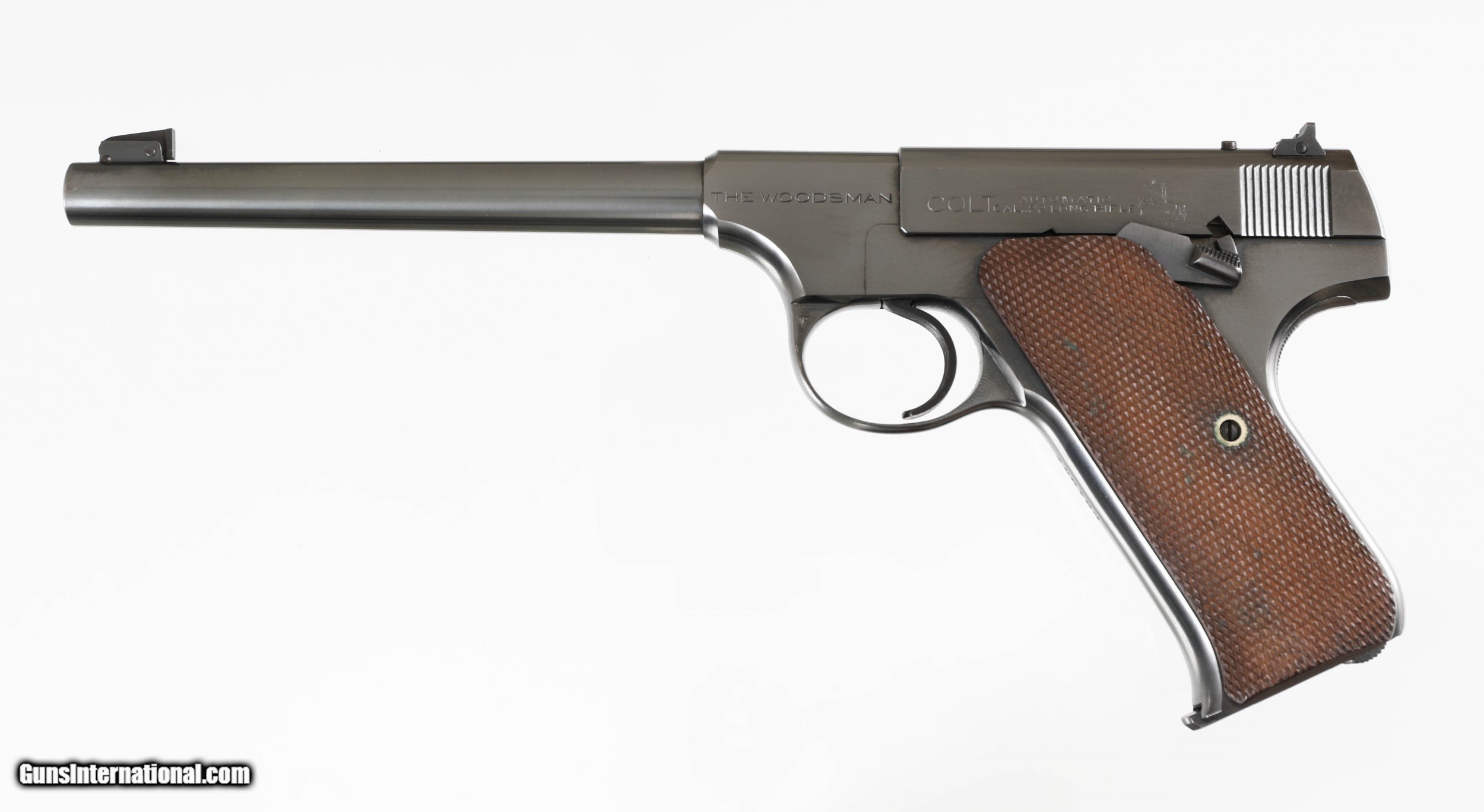 SOLD Curio/Relic: Yes Manufacturer: COLT Model: WOODSMAN Serial Number: 140XXX Barrel Length: 6 1/2 Caliber Info: 22LR Condition: EXCELLENT |