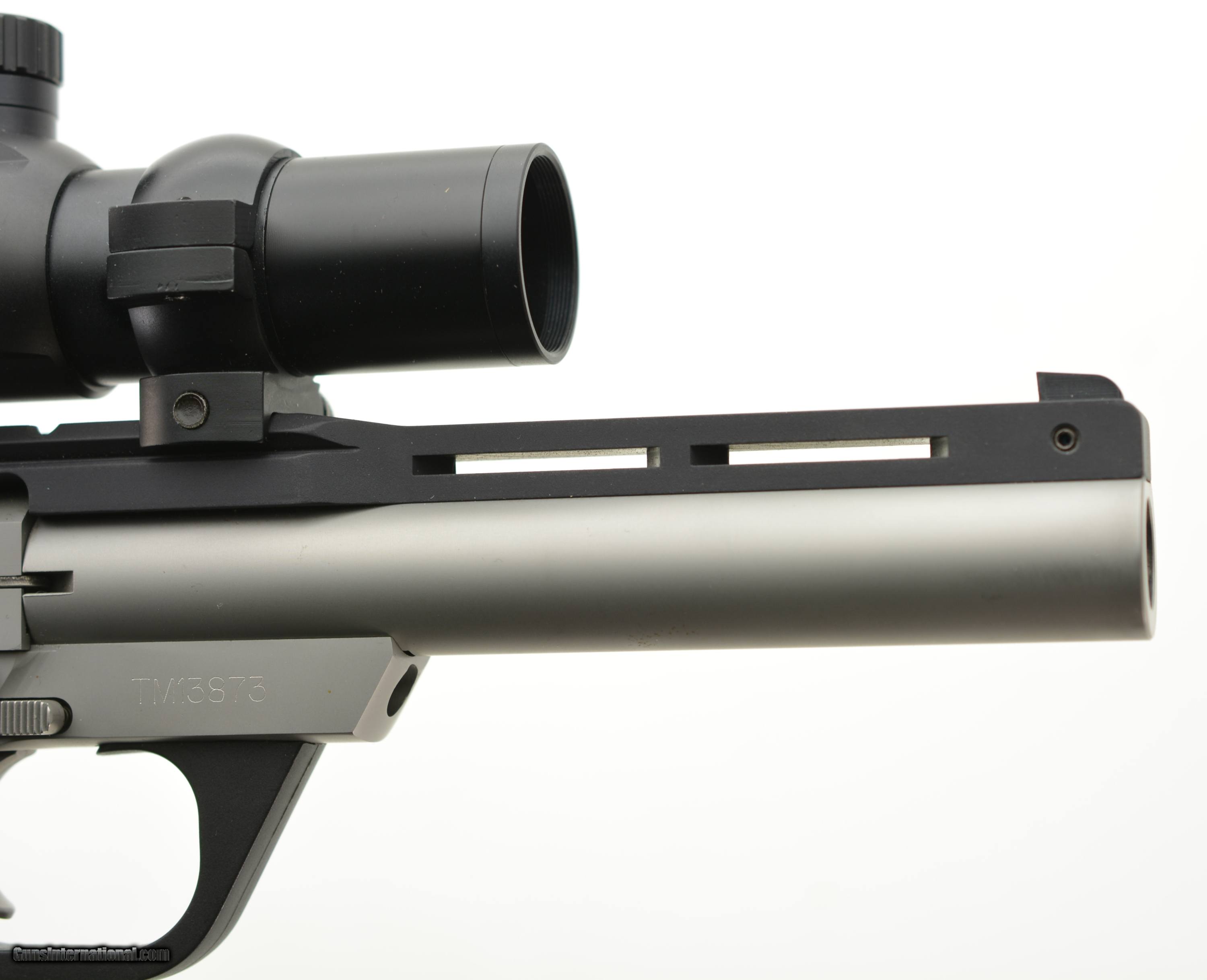Description: Serial #TM13873, .22 LR, 6 inch VR barrel with a bright, excellent bore. This is the Colt Target model pistol manufactured in 1998. The pistol features a grooved sight rib, adjustable rear sight and has a mounted Tasco Pro Point red dot sight. The matte stainless barrel and slide are in excellent condition with some very light use and rub marks on the latter. The black plastic Colt grips are excellent. It comes with one original Colt 10 round magazine. The sight functions properly with a bright dot and will make a great target or hunting pistol. FFL SOLD Manufacturer: Colt Model: 22 Caliber Info: .22 LR Gauge Info: .22 LR |
