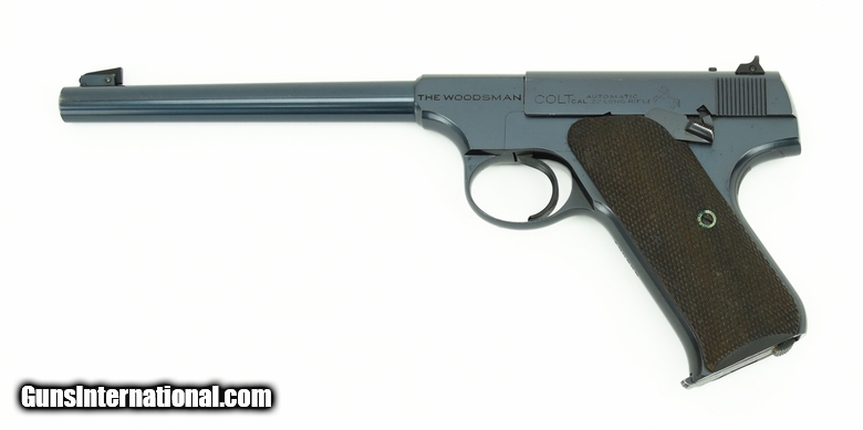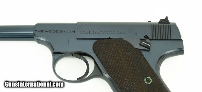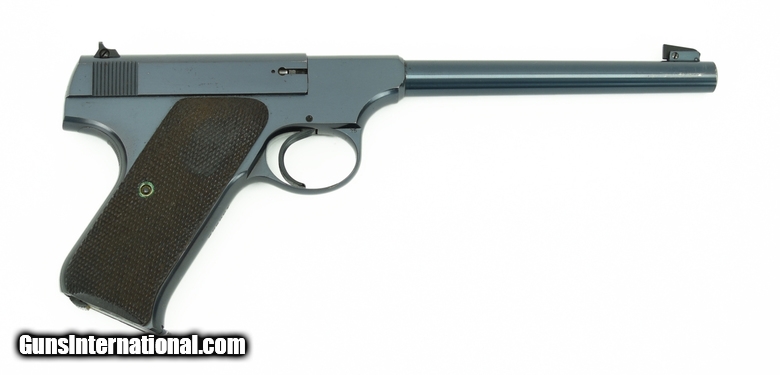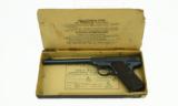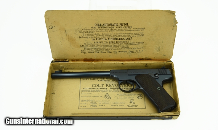 Colt Woodsman .22 LR caliber pistol. Made in 1939. 6 ½” barrel. 99% of the original finish. Grips are excellent. Action works perfect, and bore is excellent. Gun is excellent and has the original box. Almost 700,000 of the Woodsman series guns were built between 1915 and 1917. The basic design is one of John Browning and then refined by Colt’s designers and gunsmiths before its launch in 1915.