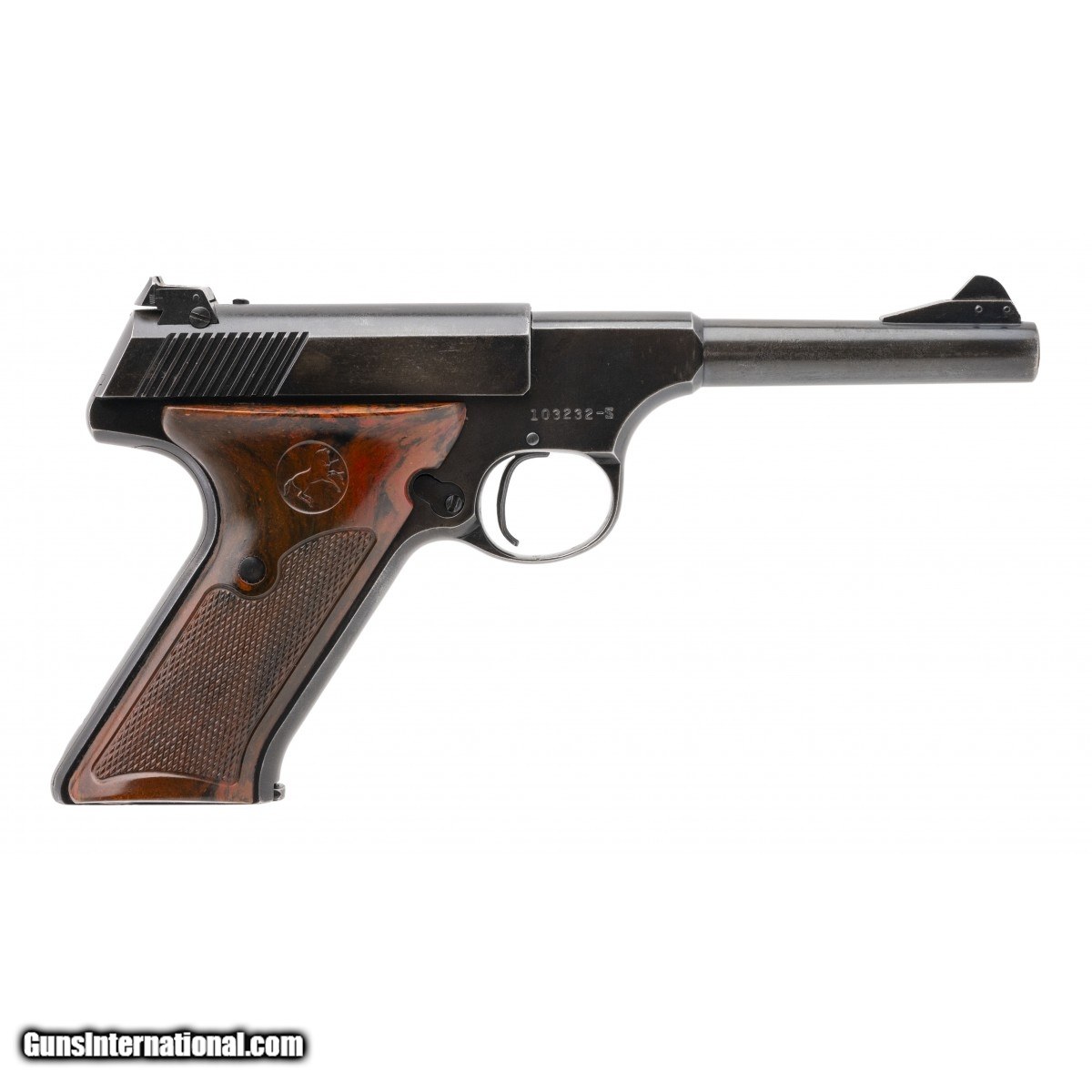 SN:103232-S. Made in 1952 .22LR with a 4.5"" barrel. Bore is in excellent condition. Semi-auto target pistol. Finish is in very good condition with approximately 90% of it original bluing. grips are in excellent condition. Pistol has adjustable rear sights and blade front sight. Overall condition is very good. (CONSIGNMENT)