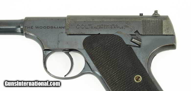 Description: "Colt Woodsman .22 LR caliber pistol. Made in 1928. 6½" Model made in 1928. Has about 80% blue with some pitting on the slide. Bore and action are excellent. SOLD Curio/Relic: Yes |