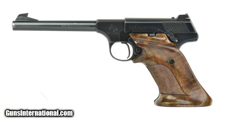 Description: "Colt Woodsman .22 LR caliber pistol. 2nd Series target model with 6" barrel. Has custom wood grips. SOLD |