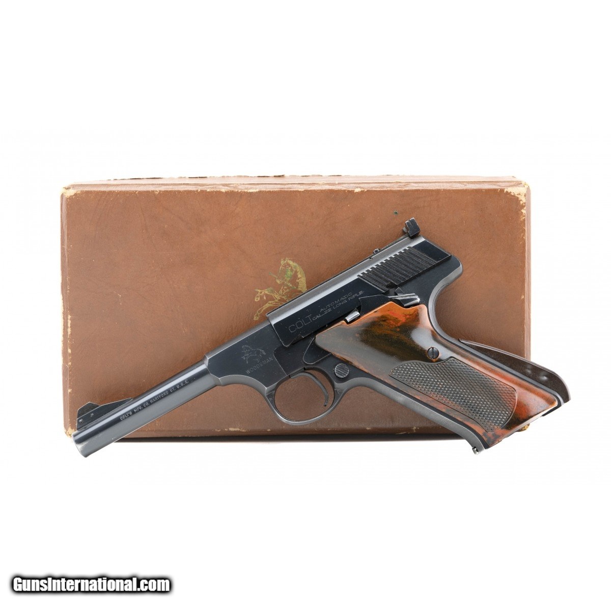 Description: " 2nd Issue Sport Model made in 1953. Has correct ""Coltwood"" plastic grips. The gun is in excellent condition with 98% original blue with just a bit of muzzle wear. Comes in original box with tool, test target and instruction sheet. SOLD |