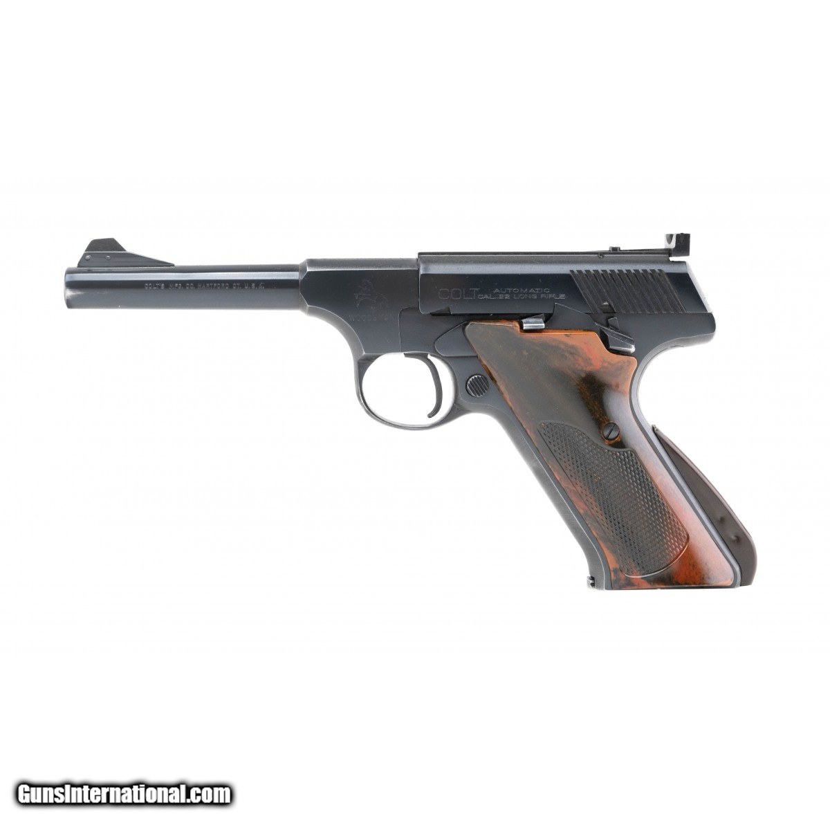2nd Issue Sport Model made in 1953. Has correct ""Coltwood"" plastic grips. The gun is in excellent condition with 98% original blue with just a bit of muzzle wear. Comes in original box with tool, test target and instruction sheet.