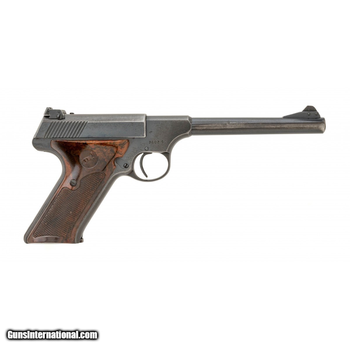 SN: 7602-S, made circa 1950, .22 Long rifle, 6"" Barrel. Semi-auto Target pistol. Has about 85% blue, very good condition.