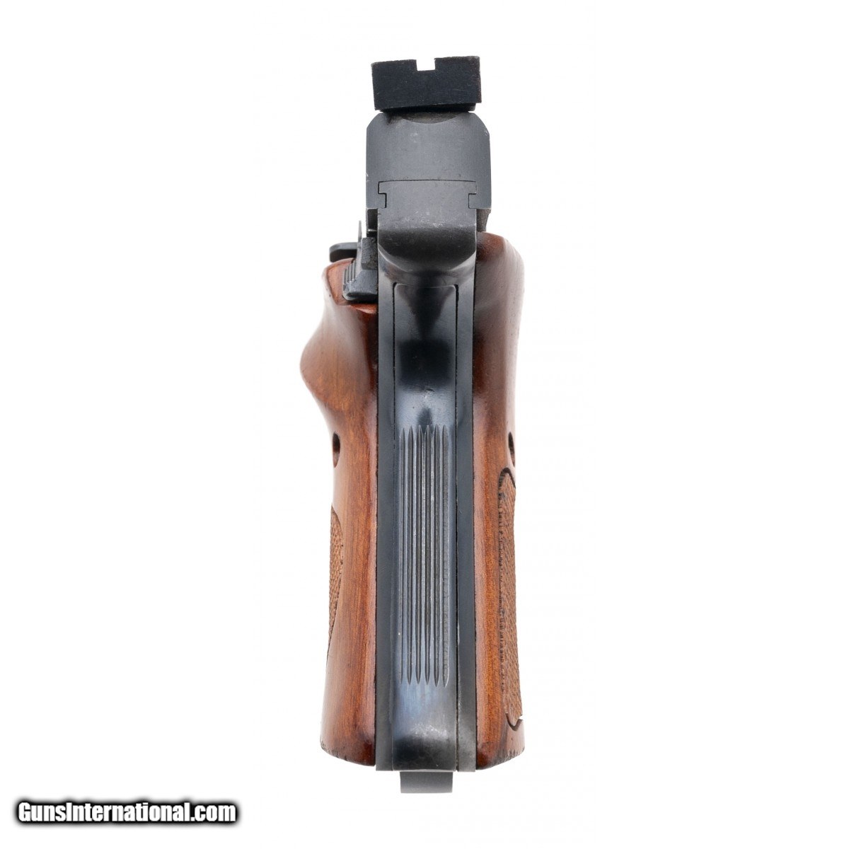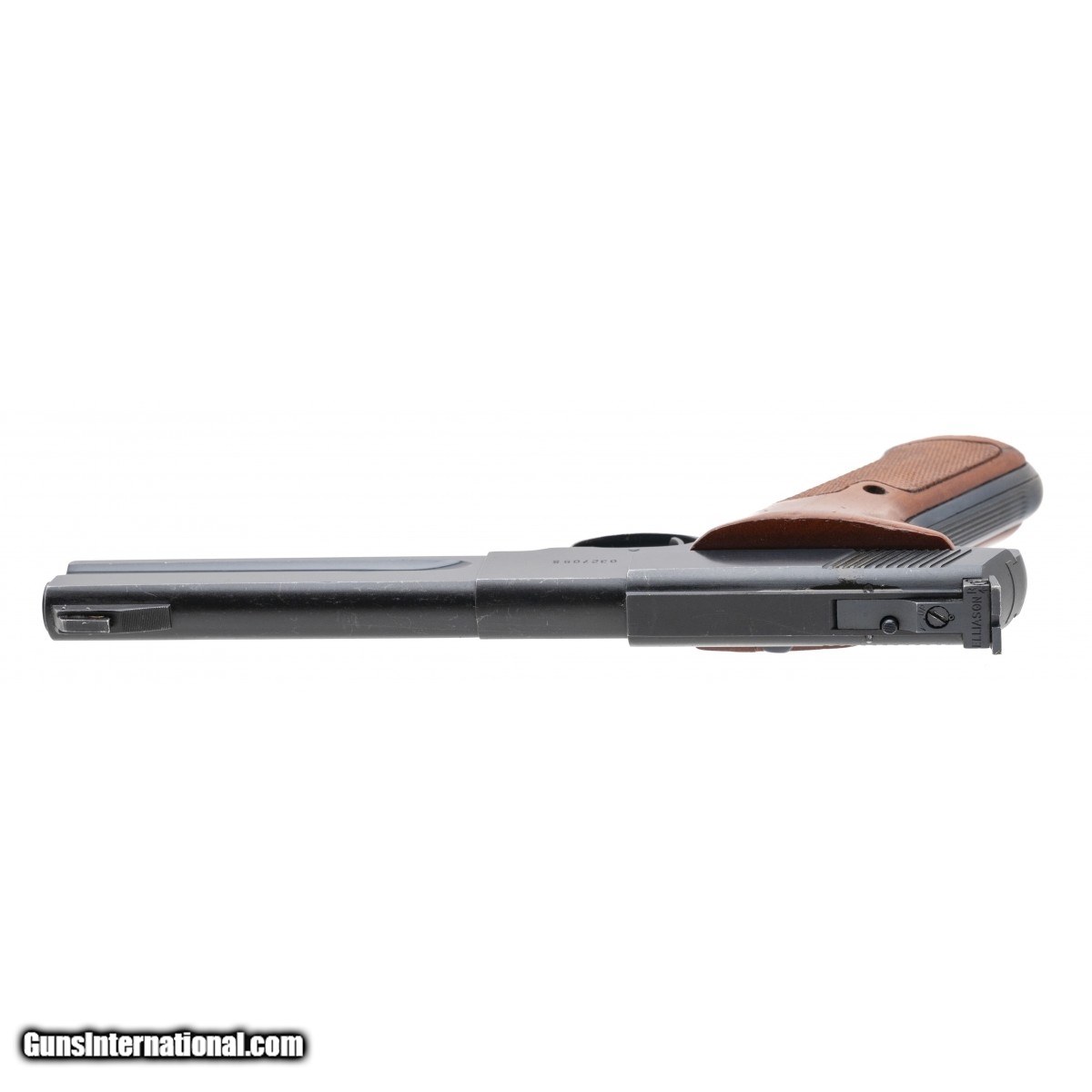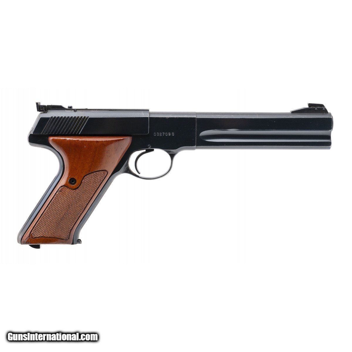 Description: " SN: 032709S. Made in 1972, .22LR with a 6"" barrel. 3rd Series target pistol with wood grips. The metal is very good with 92% original blue. The grips are in very good condition with some marks and wear. Overall very good condition. SOLD |