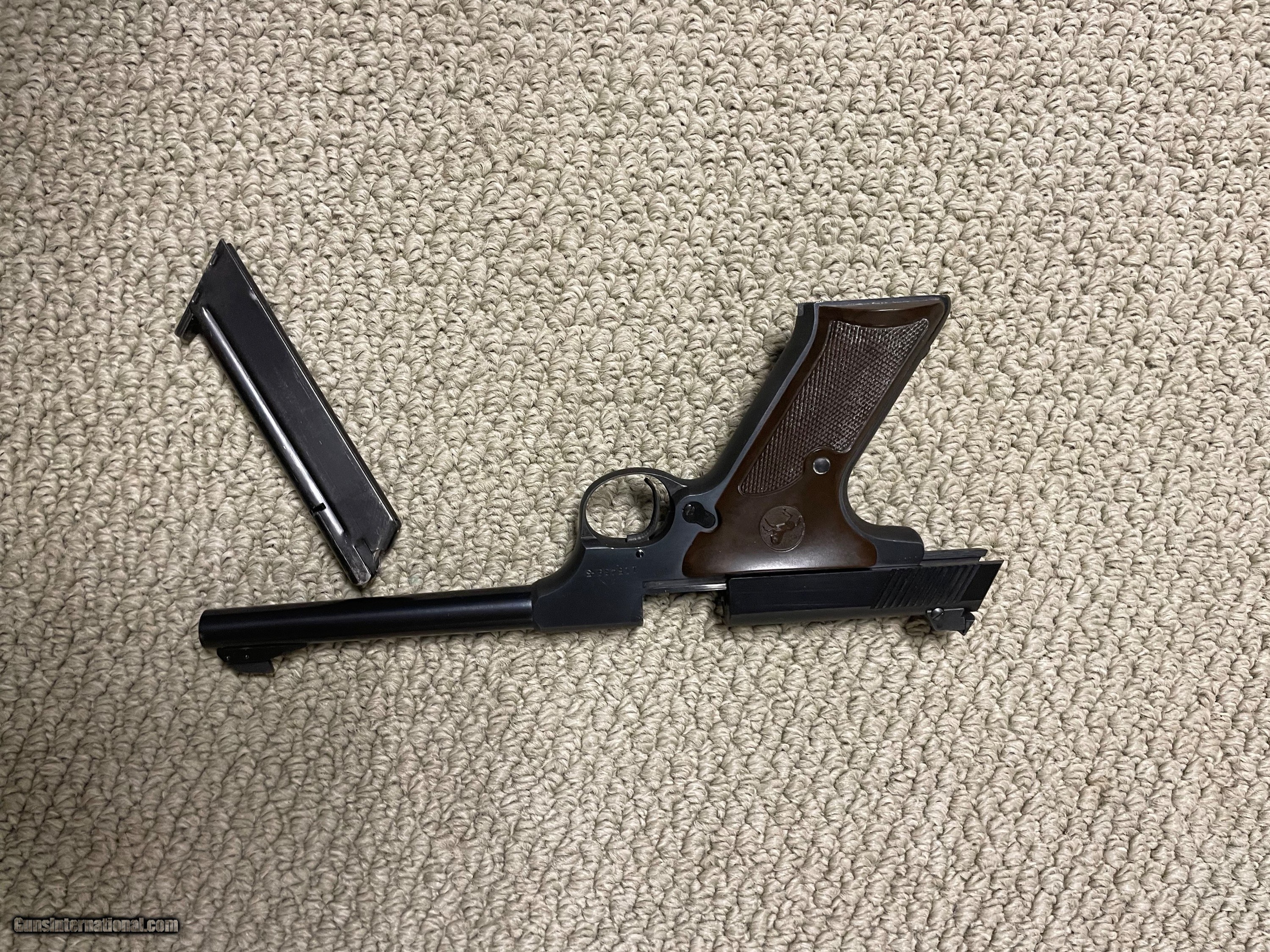 Description: 1952 production date Colt Woodsman .22 pistol with a 4 1/2" barrel. This pistol is in phenomenal shape and has never beef refinished or reblued. Comes with original manuals, original box and 1 magazine. Bore is immaculate. $25 flat rate shipping to the lower 48. SOLD Curio/Relic: Yes Handgun Caliber: .22 Long Rifle Manufacturer: Colt Model: Woodsman Barrel Length: 4 1/2” |