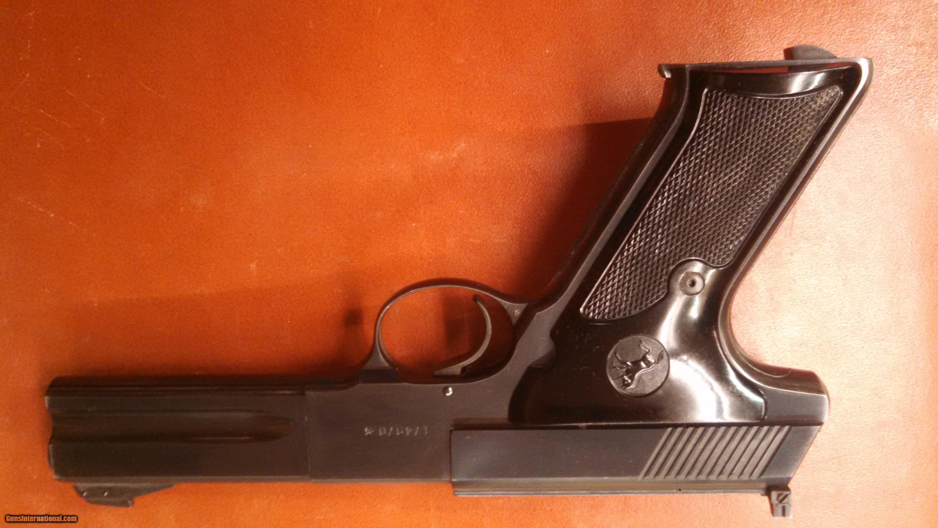 Description: A very nice Colt Woodsman Match Target with the desirable barrel length of 4 1/2". It was made in 1957 and comes in it original box serial numbered to the gun. It looks to be 99% an easy 98+. The picture show reflection and smudging from being wiped down. the picture from my phone do it little justice, it is nice! I have an older style tombstone mag I can throw in for $65.00 more. Thanks for looking! SOLD Curio/Relic: Yes |