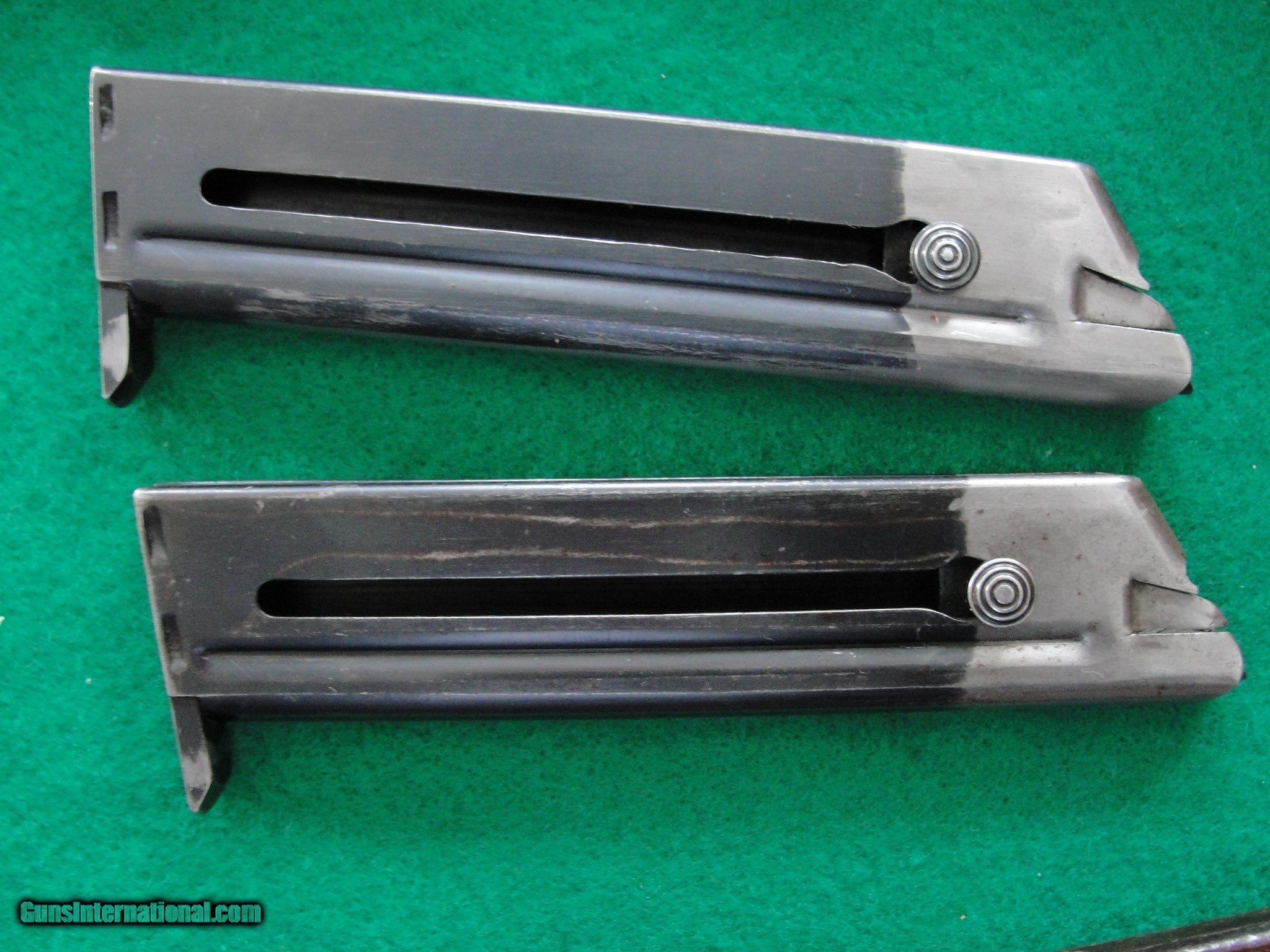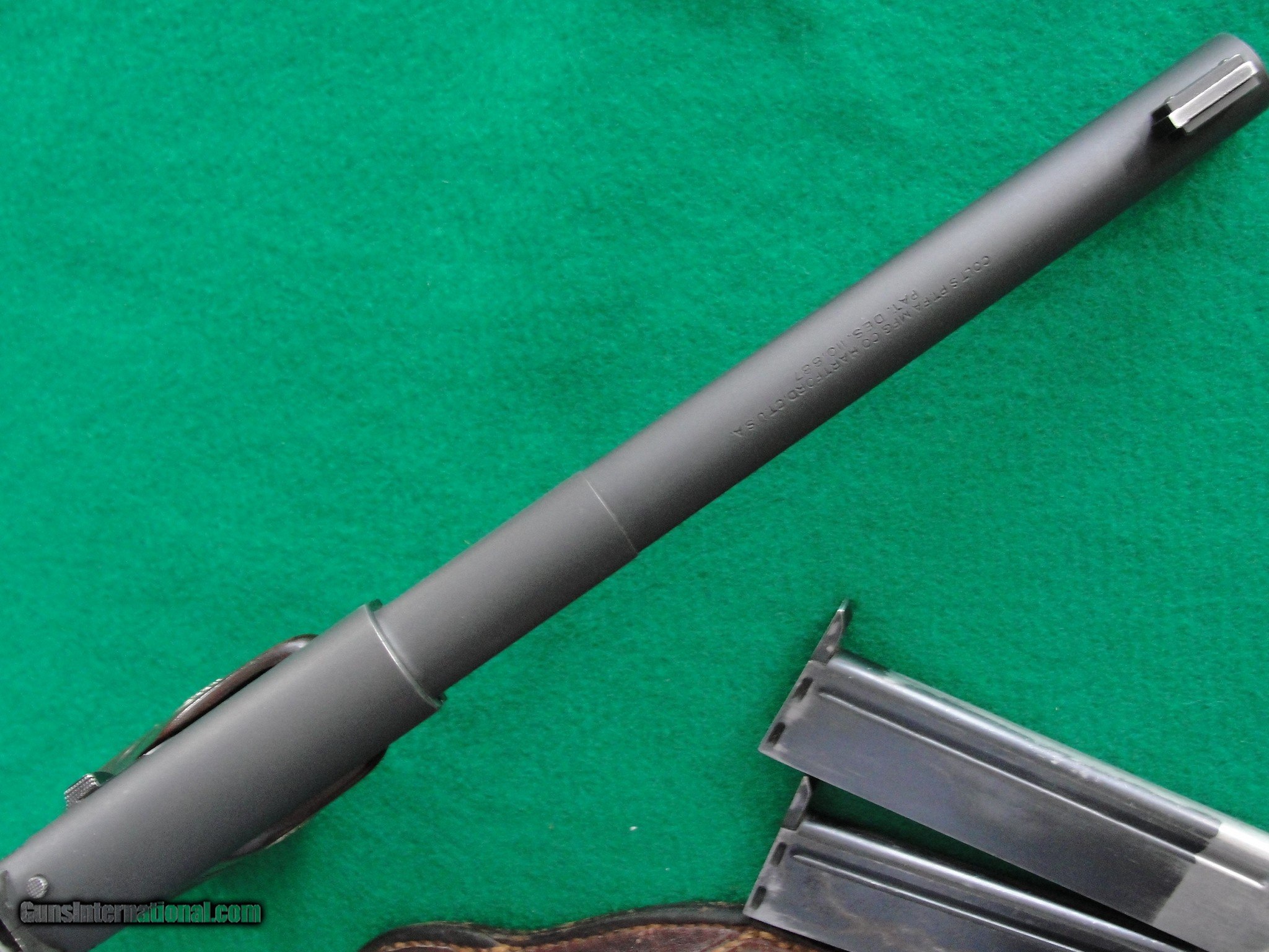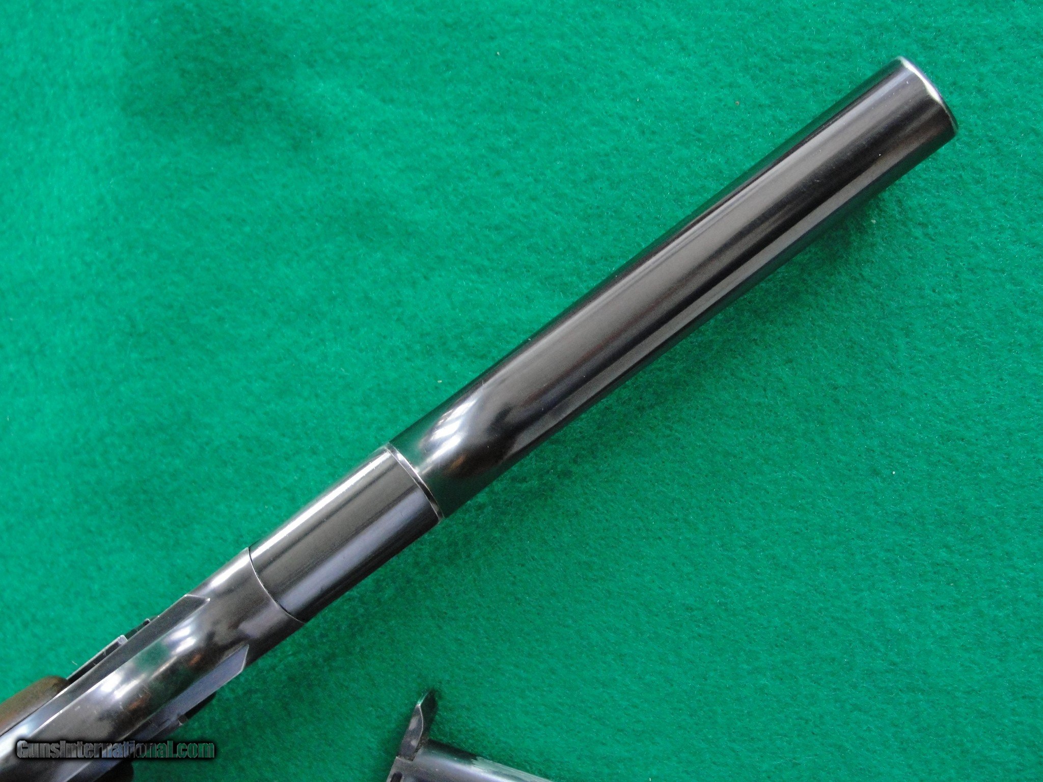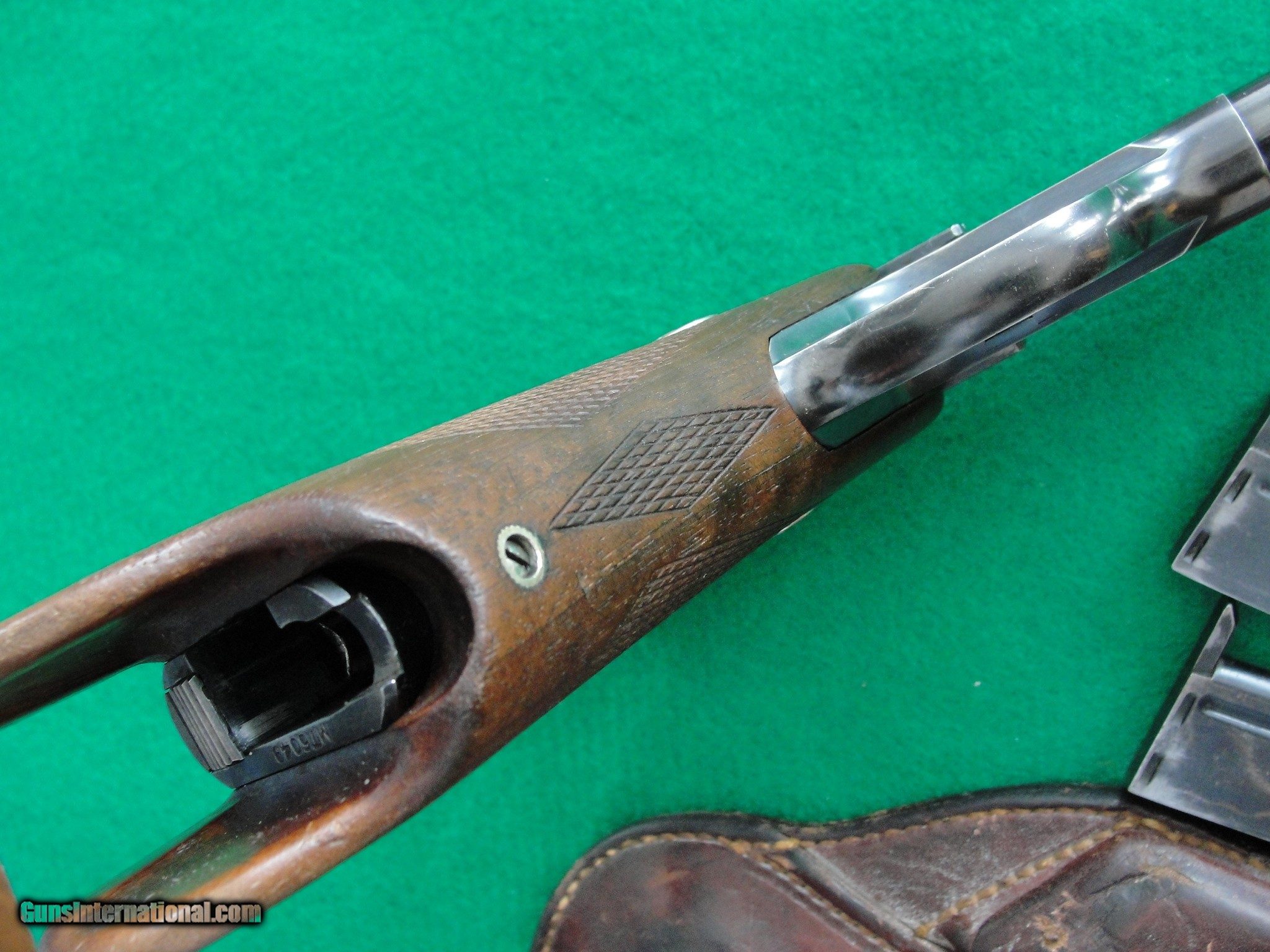 Description: Nice vintage Colt target pistol, great grips, vintage Colorado Saddlery holster, and two factory magazines. Mechanically fine, beautiful bore. Shiny, glossy finish, with mild holster wear. #MT60xx made 1939. CA sales welcome, C&R OK in most areas. Email or call for more details. SOLD |