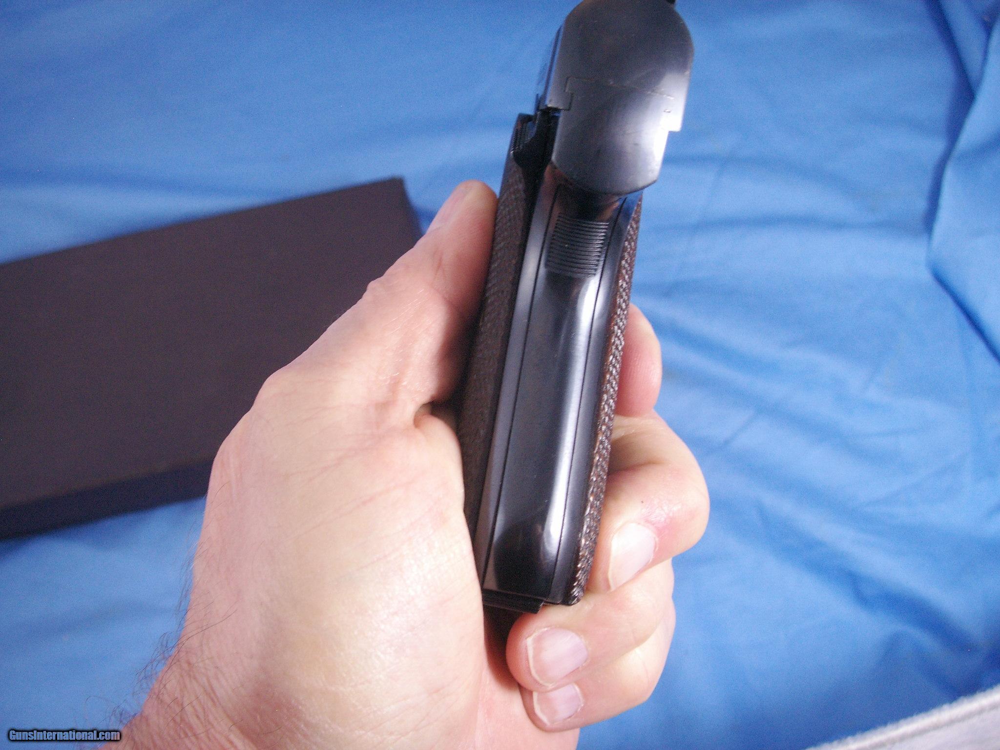 Description: SOLD PENDING FUNDS: Colt 1st Series Woodsman Target Model pistol with a Sport Model barrel replaced sometime in it's history. This has the 4.5" barrel and in .22 LR caliber. It is rated at 98-99% original condition and comes with the original box, manual, papers and hang tag. This was manufactured in 1930 and the mechanics and bore are excellent. Please see the high definition pictures for a more detailed description. A great investment and addition to any pre-war Colt collection. SOLD Curio/Relic: Yes |