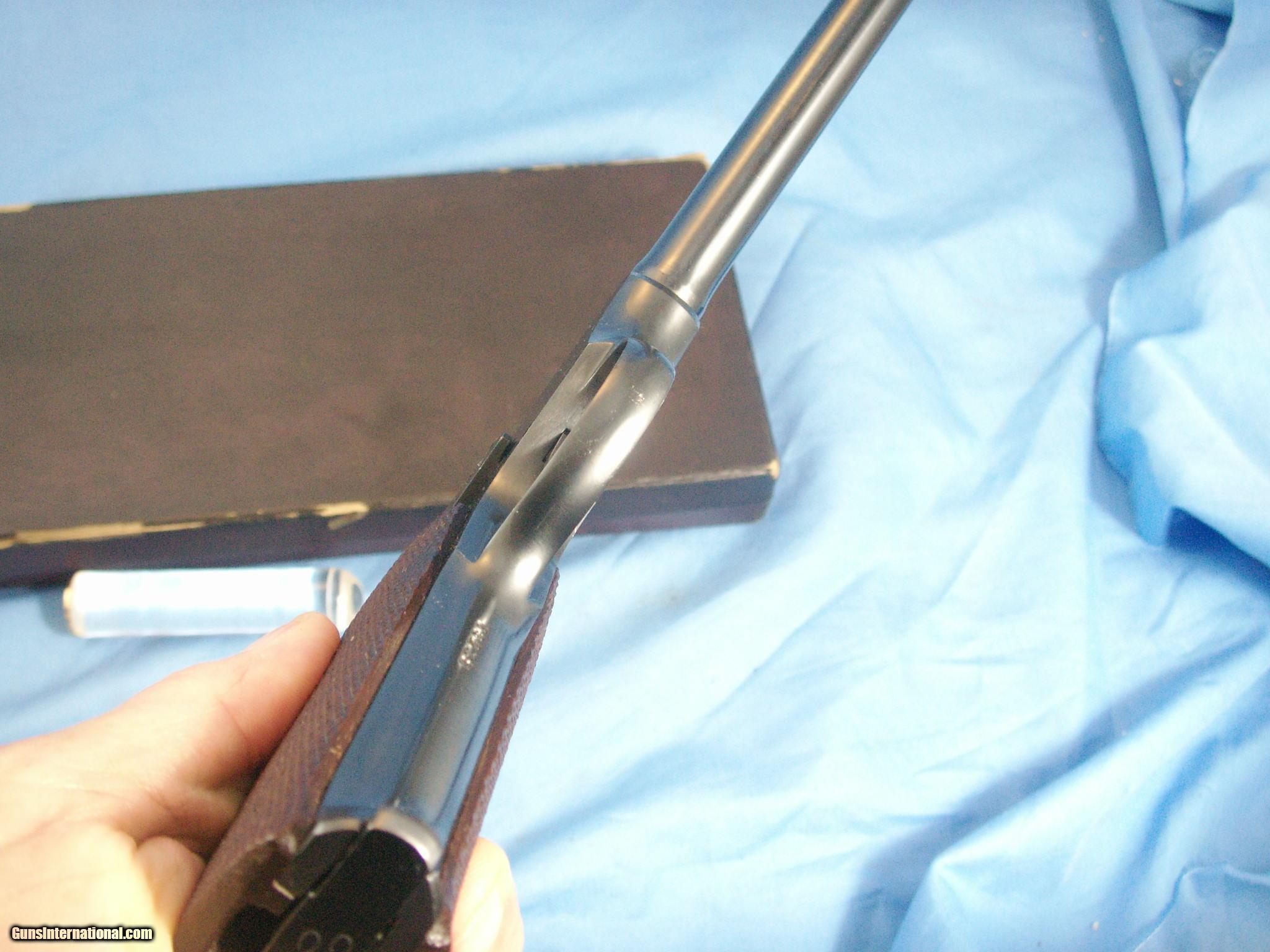Description: SOLD PENDING FUNDS: Colt 1st Series Woodsman Target Model pistol. It is in .22 LR caliber with a 6 5/8" barrel. It was manufactured in 1929. This gun is rated at 99% original condition and has a mint bore and perfect mechanical function. This comes with it's original box/papers/manual and hang tag. This is a MINT 1st series Woodsman and would make a great addition to any high end collection. Please see my other listings for mor collectable firearms. SOLD Curio/Relic: Yes |
