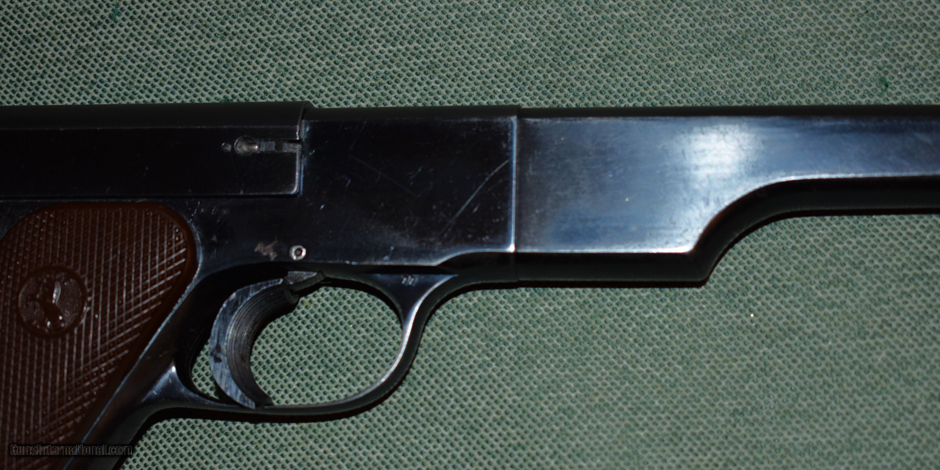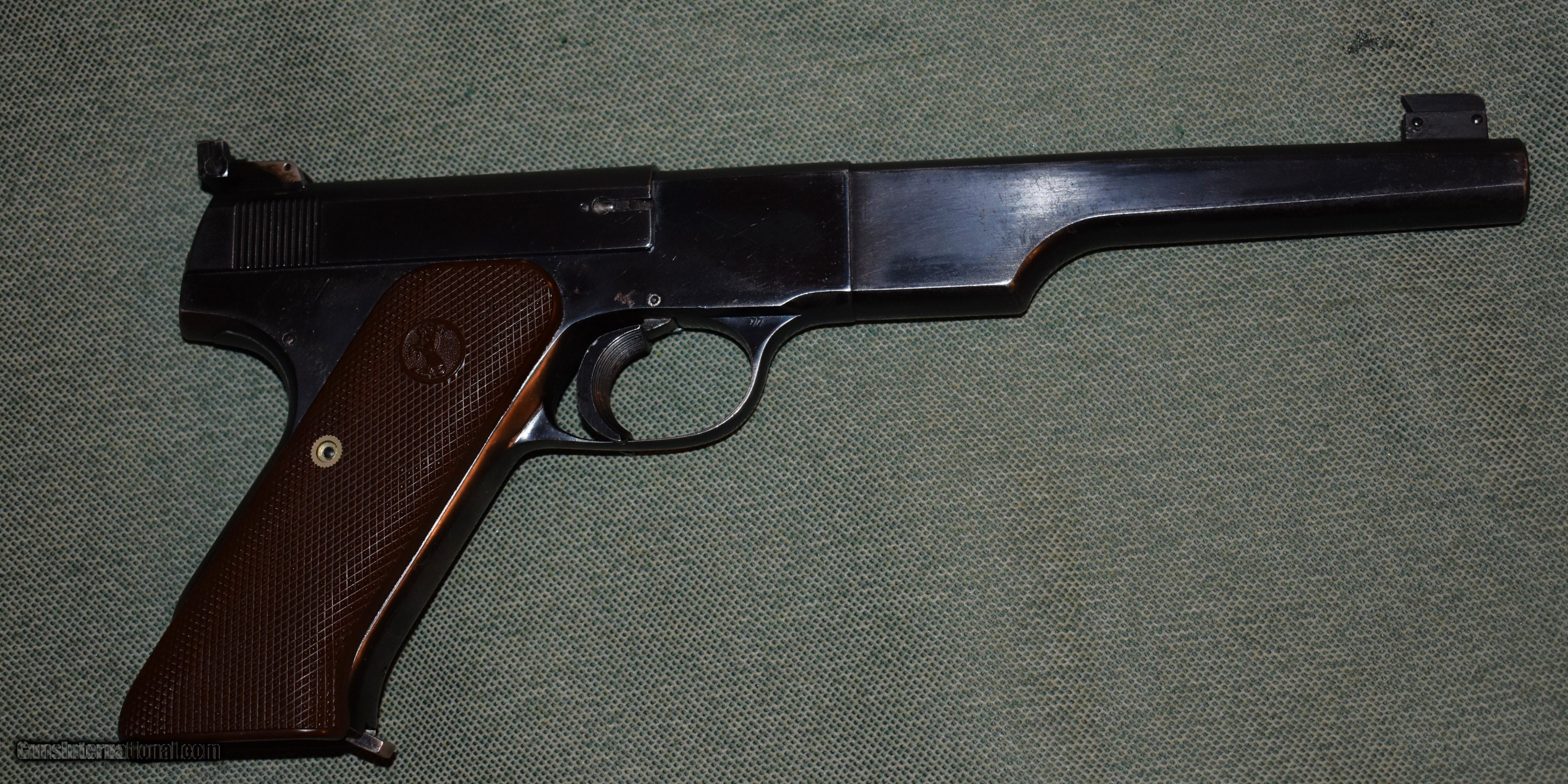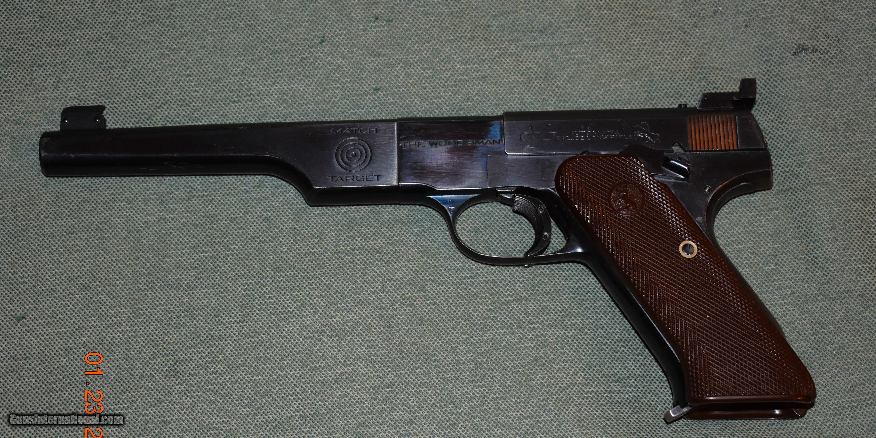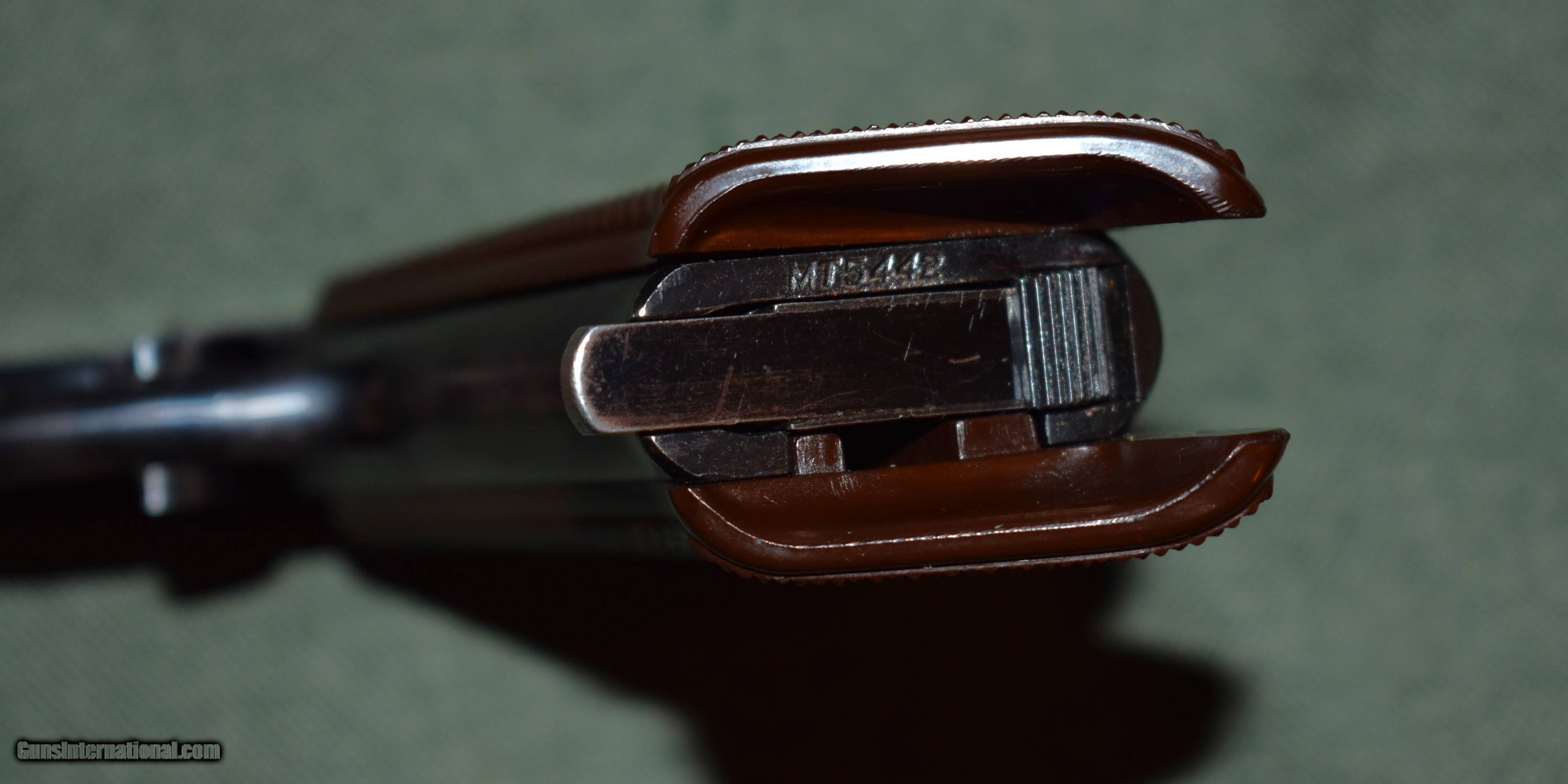 Description: Colt first model "bullseye" match target. Built in 1039,this pistol has a 65/8" flat side barrel with an excellent bore. The pistol is in excellent original condition retaining 95% of the original blue. The grips are Colt bakelite which were used on the match target Navy guns and are correct for a 1939 gun. This is a great shooting pistol that functions perfectly. The magazine is a period correct aftermarket that fits perfectly. A niec match target for the collector who shoots. C&R eligible. Price includes shipping to your FFL. SOLD Curio/Relic: Yes Handgun Caliber: .22 Long Rifle Manufacturer: Colt Model: Match Target Serial Number: MT5442 Barrel Length: 65/8 Condition: excellent Metal Condition: excellent Wood Condition: excellent Bore Condition: mint Action: Semi Auto Manufacture Date: 1939 |