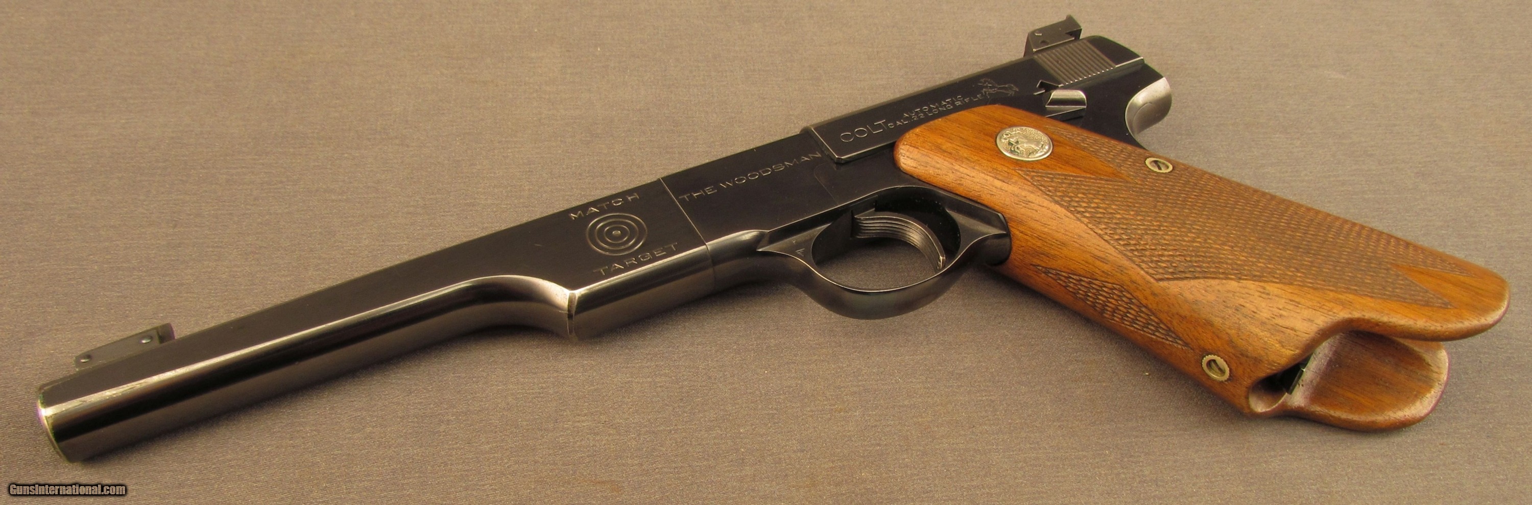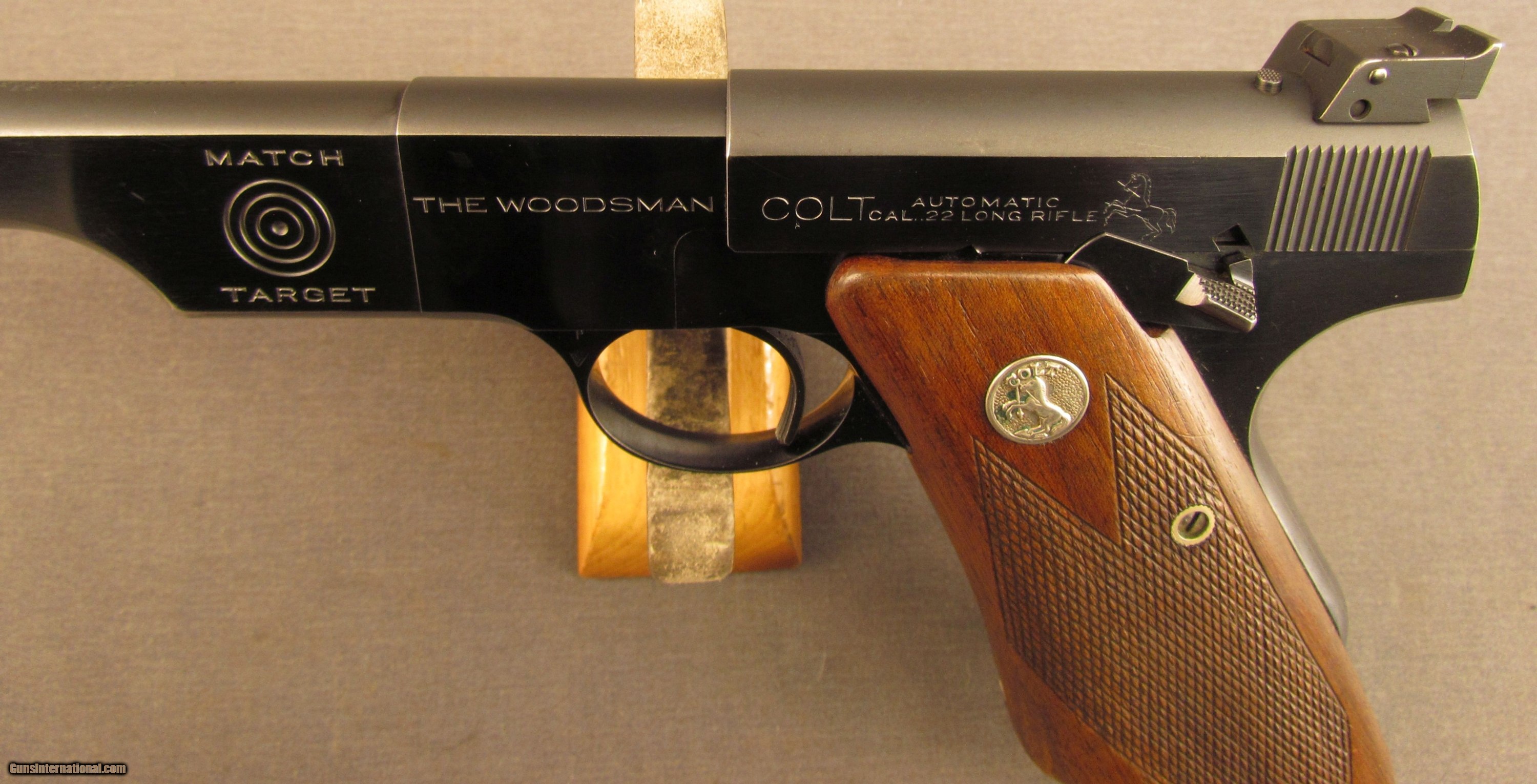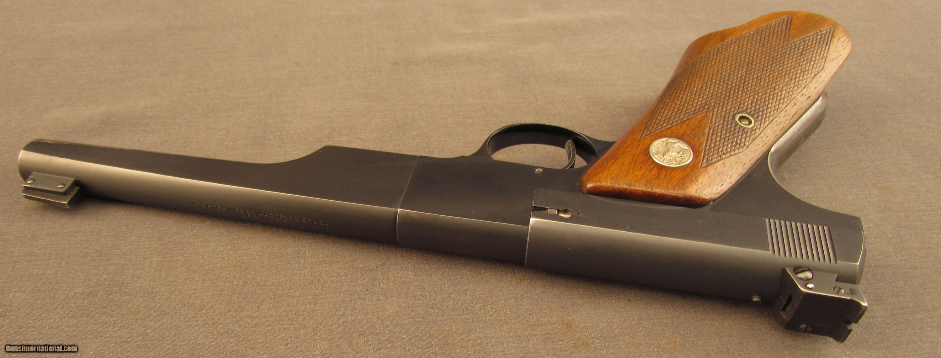 Description: Serial #MT6618, .22 LR, 6 5/8" slab-sided barrel with an excellent, bright bore. This is a 1939-made pistol that has retained 95-97% of the original blue finish with some mild silvering at the muzzle, along the high edges, and some small bright gray spots along the barrel. The original, checkered walnut, Colt medallion, “Elephant Ear" grips are intact and have scattered minor handling marks and small surface blemishes, along with some flattening of the points. The pistol is mechanically excellent and comes with a single original two-tone Match Target marked magazine. This is a splendid example of a rare and desirable Match Target Woodsman, and rates excellent condition overall. FFL or C&R SOLD Curio/Relic: Yes Manufacturer: Colt Model: Woodsman Serial Number: MT6618 Caliber Info: .22LR Gauge Info: .22LR |
