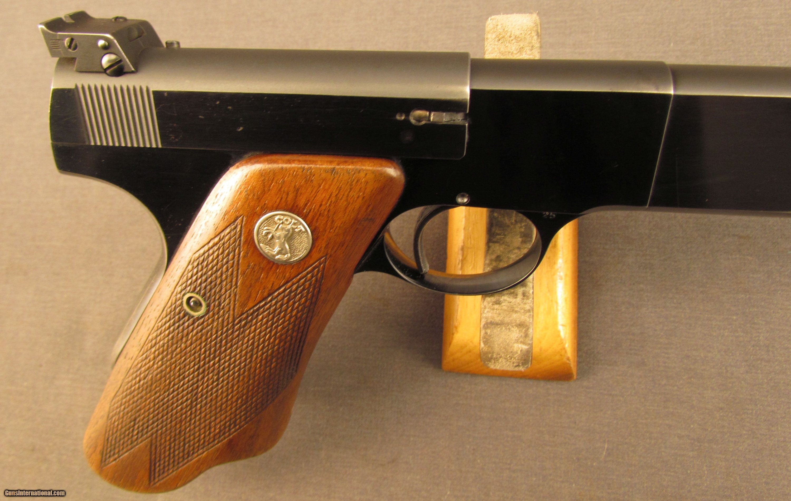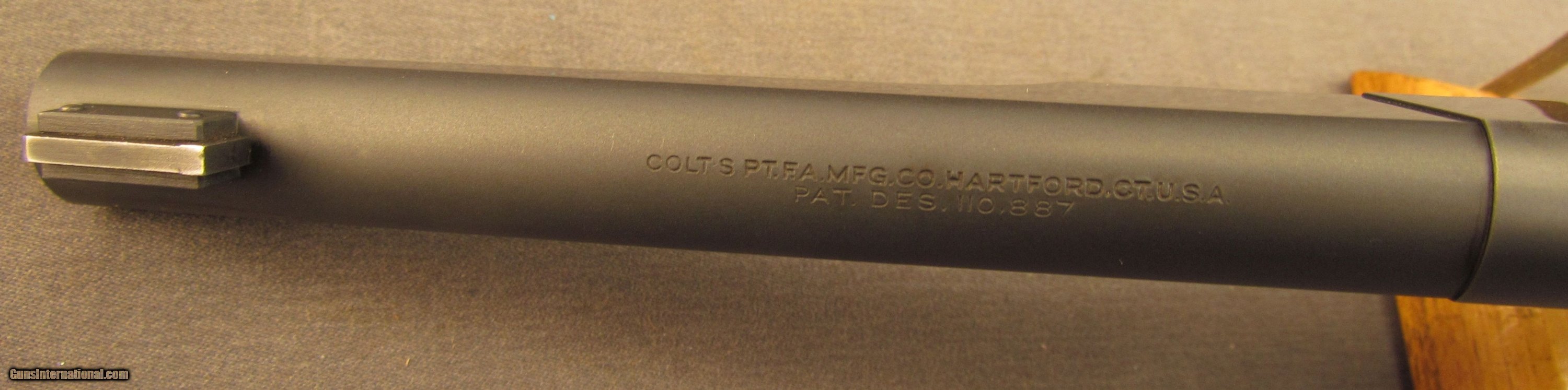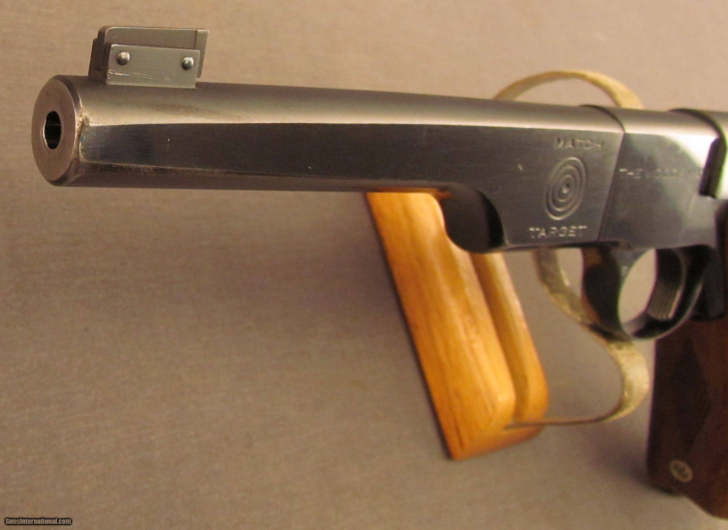 Description: Serial #MT6618, .22 LR, 6 5/8" slab-sided barrel with an excellent, bright bore. This is a 1939-made pistol that has retained 95-97% of the original blue finish with some mild silvering at the muzzle, along the high edges, and some small bright gray spots along the barrel. The original, checkered walnut, Colt medallion, “Elephant Ear" grips are intact and have scattered minor handling marks and small surface blemishes, along with some flattening of the points. The pistol is mechanically excellent and comes with a single original two-tone Match Target marked magazine. This is a splendid example of a rare and desirable Match Target Woodsman, and rates excellent condition overall. FFL or C&R SOLD Curio/Relic: Yes Manufacturer: Colt Model: Woodsman Serial Number: MT6618 Caliber Info: .22LR Gauge Info: .22LR |