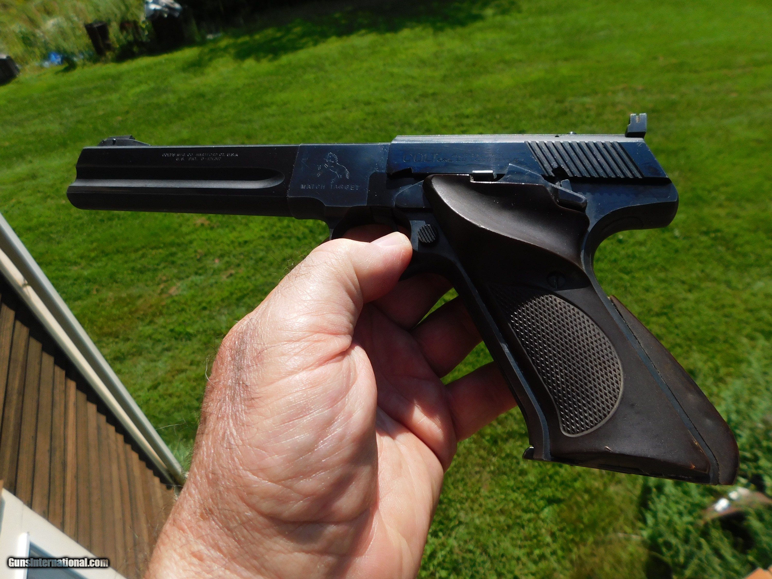 Description: Nice looking 1955 Match Target. Ex cond or ist near 70 yrs on the planet, not perfect but conditon refelcts care and light use. Priced well under any others that are similar that we are aware of. If you've been looking for one ...don't miss this one Shipping is $ 39.00 with insurance IF IT DOES NOT SAY ."SALE PENDING, UNDER DEPOSIT or ON HOLD"...IT IS AVAILABLE. WE DO NOT REPLY TO INQUIRIES THAT SAY "INTERESTED IN THIS GUN" OR "IS IT AVAILABLE" IF YOU WOULD LIKE TO BUY THIS OR ANY OF OUR GUNS WE SUGGEST YOU PHONE US; WE ARE OFTEN AVAIALABLE LONG HOURS. IF YOU ARE INTERSTED IN A GUN THAT IS UNDER DEPOSIT AND WOULD LIKE TO BE NOTIFIED IF A SIMILAR GUN COMES IN DROP US A LINE AND WE WILL MAKE EFFORTS TO CONTACT YOU WHEN ONE DOES COME IN. WE HAVE OVER 2000 SALES ON ALL SITES WITH AN A+ RATING ON ALL WE ALSO KEEP AN INVENTORY OF OLDER PERIOD CORRECT SCOPES; CALL WITH NEEDS WE MOSTLY PICK VERY CLEAN AND LIGHLTY USED GUNS. WE ARE HAPPY TO TAKE CONSIGNMENT GUNS AND COLLECTIONS OR WILL BUY YOURS OUTRIGHT. WE SOMETIMES ARE EMPLOYED FOR ESTATE PURPOSES AND VALUATIONS. AT THIS TIME WE ARE ONLY ACCEPTING US POSTAL MONEY ORDERS OR BANK CHECKS FOR PAYMENT IT IS THE BUYERS RESPONSIBILITY TO GET US A COPY OF YOUR RECEIVING FFL'S LIC AND A COPY OF YOUR PHOTO ID BEFORE THE GUN SHIPS YOU MUST CALL OR CONTACT YOUR FFL.WE DO NOT CALL FOR YOU UNLESS THEY RQUIRE IT. LAYAWAY PURCHASES NOT COMPLETED ON ANY RETURNED ITEM UNLESS NOT AS DESCRIBED OR DAMAGED ARE SUBJECT TO A 10% RELISTING/RESTOCKING FEE AND MUST BE RETURNED WITH NO NEW MARKS OR SCRATCHES, SENT BACK INSURED, PRIORITY SIGNATURE REQUIRED. ALL INFORMATION CONTAINED HEREIN IS BELIEVED TO BE ACCURATE BUT IS NOT GUARANTEED. WITH ANY OLDER OR USED GUN IT SHOULD BE INSPECTED BY A GUNSMITH PRIOR TO SHOOTING. SOLD |