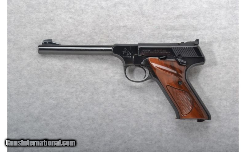 Description: SOLD Caliber Info: .22 Long Rifle Chambers: 10 shot magazine Metal Condition: Very good. Wood Condition: Very good. Minor handling marks. Bore Condition: Very good. Barrels: 6 inches Stock: Checkered hardwood grip panels. Right hand thumbrest. Weight: 32 oz. Sights: Blade front. Adjustable notch rear. Item Location: Richfield, WI |