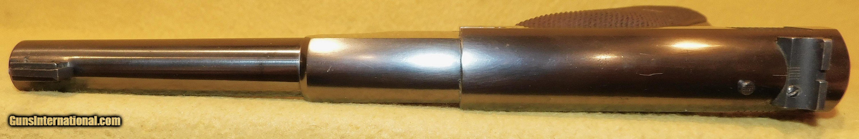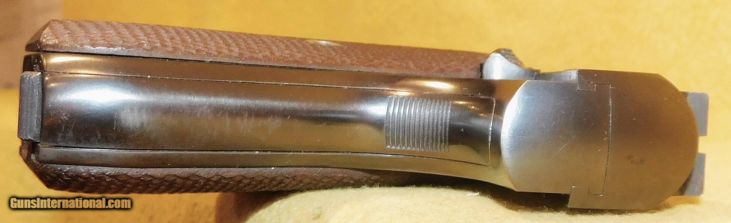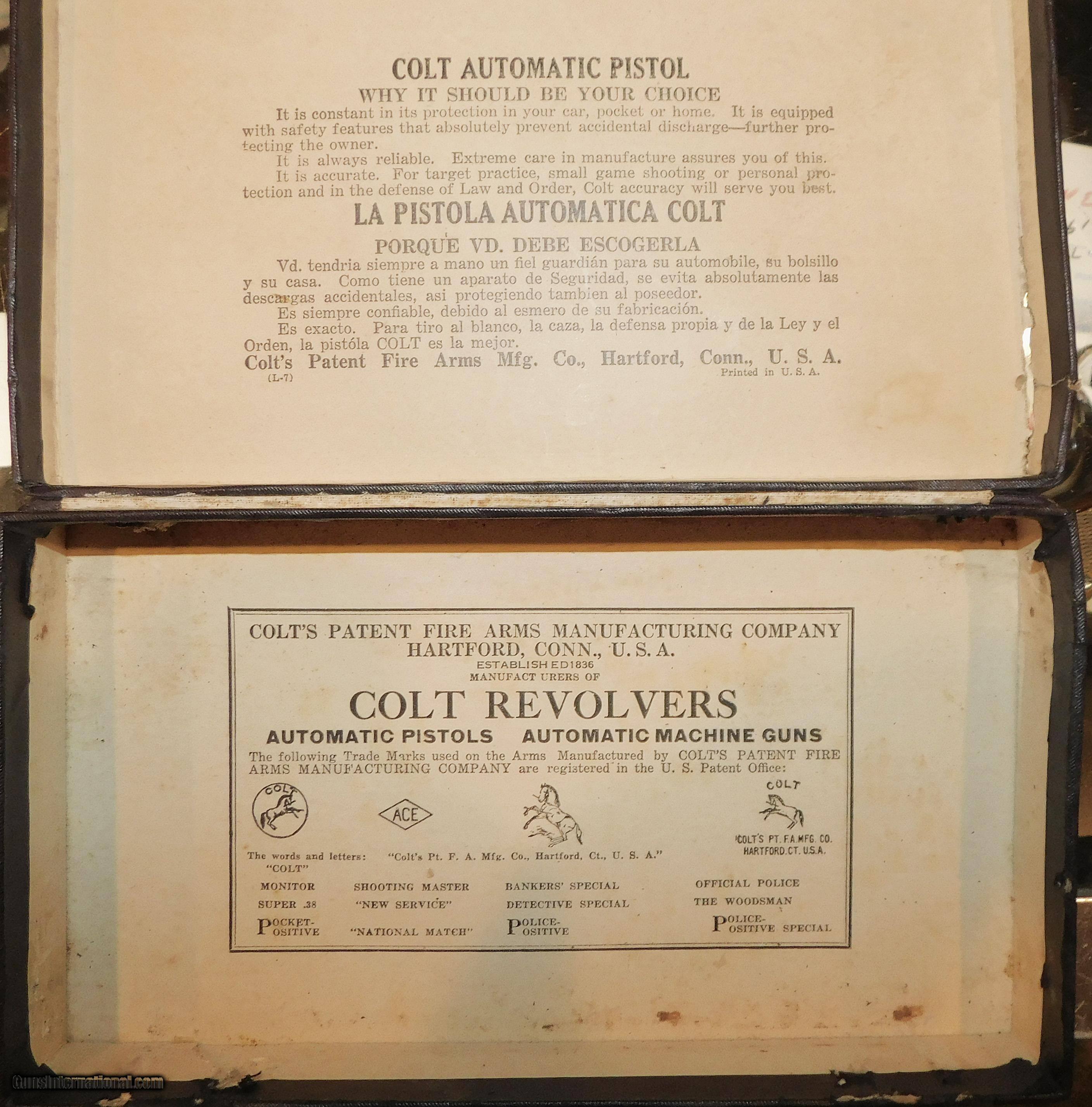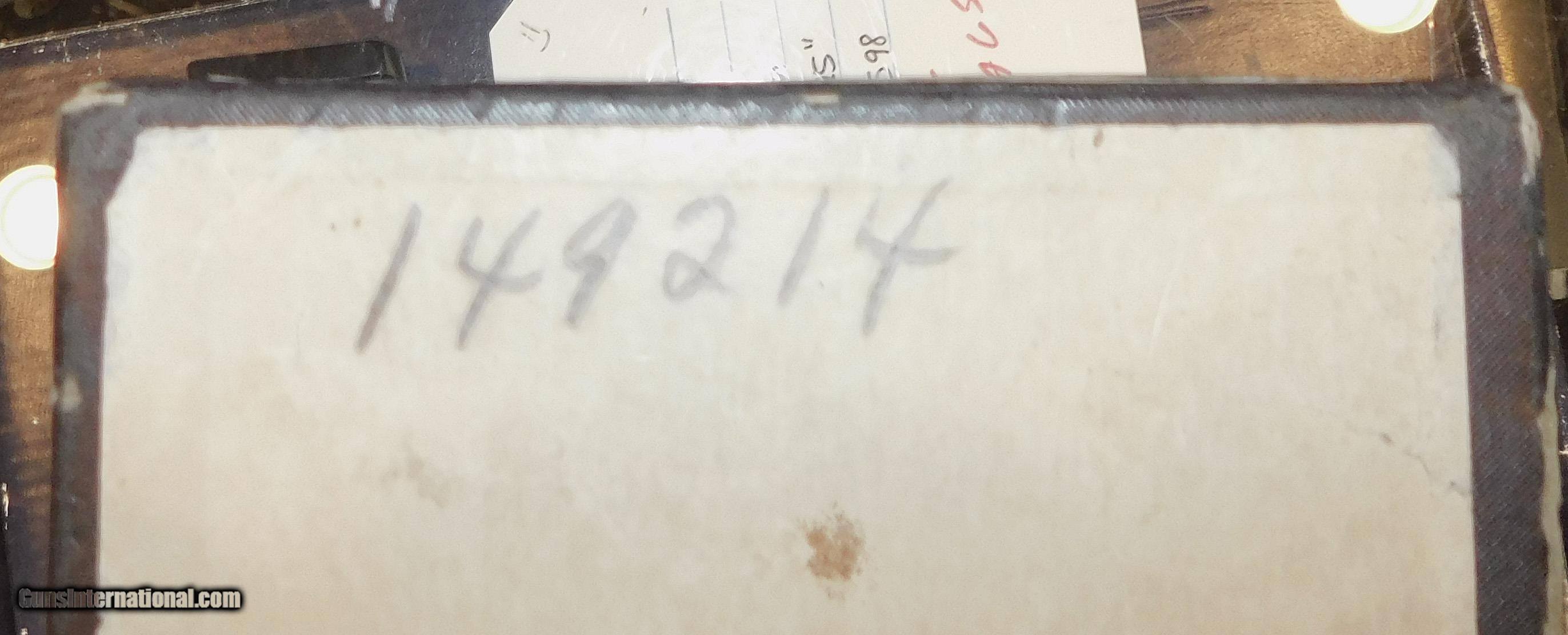 Description: COLT (PRE WAR) THE WOODSMAN (1ST SERIES) IN .22 L.R. CAL., WITH 4 .5" BARREL. COLOR BLUE. CONDITION 98% LIKE NEW. SERIAL NUMBER 149214. COLT MODEL THE WOODSMAN (PRE WAR) 1ST SERIES (CIRCA 1941) IN .22 L.R. CALIBER, CHECKED WALNUT GRIPS EXCELLENT, MIRROR BORE, COMES WITH ONE FACTORY MAGAZINE, TEST TARGET, PAPERS, WRAPPED GLEANING ROD, SERIAL NUMBERED BOX, 98% LIKE NEW OVERALL CONDITION, OUR STOCK # D7858 SOLD |