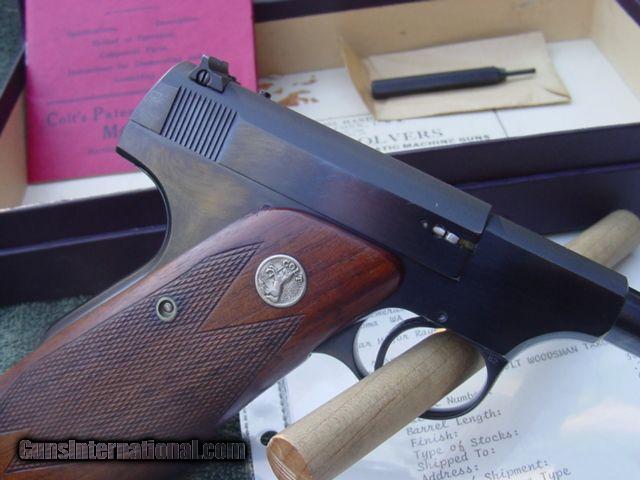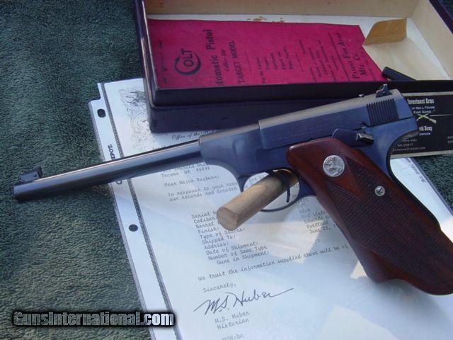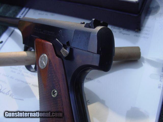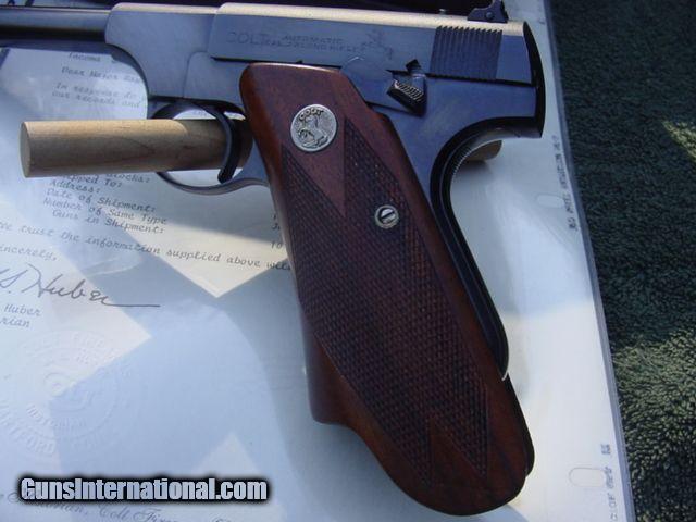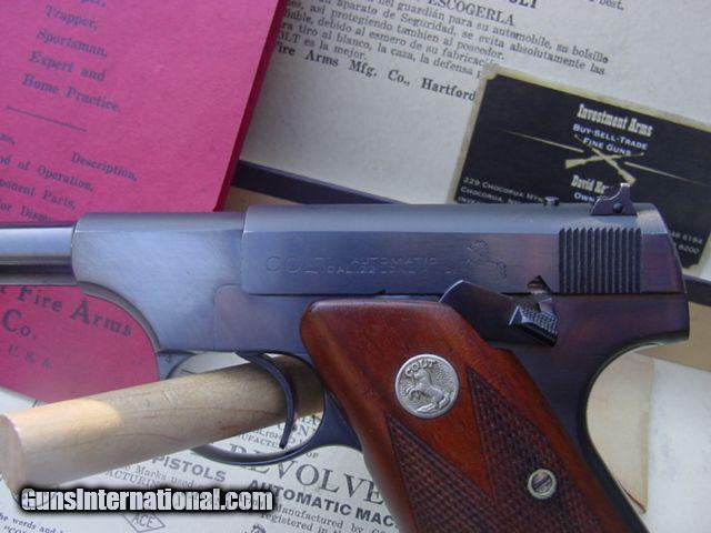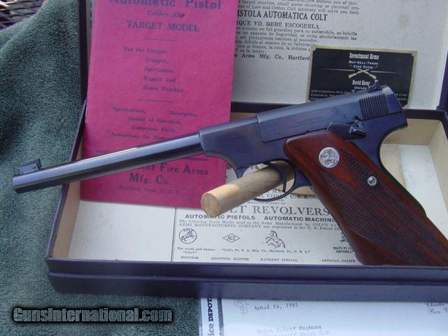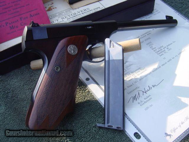 Colt Pre Woodsman Target, Elephant Ear Grips, box, papers, tool, and Colt letter