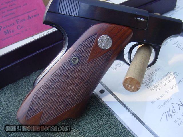 Description: SOLD Colt Pre Woodsman First Model Target with,later added, Elephant Ear Grips,in original box-pencil numbered to gun-no label.Has both red instruction booklet and tool along with envelope and Colt letter,from Maj Rayburn Collection, showing shipment in 1922 to Portland Maine. This "custom" Pre Woodsman has been perfectly restored-looks like factory quality to 99% condition,bright excellent bore Partridge front sight, adjutable rear.The grips have the silver Rampant Colt medallions,exellent condition,the box has tape on corners and is pencil numbered to the gun-label is missing.Has the sight adjusment screw driver and manila envelopees with one two tone magazine marked "Cal.22/Colt" A C&R is accepted for this gun. Offered at 1595 plus shipping-should be $25- 30 with insurance USPS to-bit more to C&R for common carrier. Happy to send along more pics,answer questions over phone or email.Please email your phone number so I can call back if I miss the call-do not have text sorry,thanks. Be sure to look at my other offerings for more guns,Merkel'sMannlicher Schoenauer's, Drillings, Combo's,Colt Saa's,Colts, Rugers, Brownings,Kimber,Les Baer,Uberti'sby both Taylor and Cimarron,and Ferlib,Merkel,G&H,Parker Repro shotguns and other fine guns.Inventory always changing be sure to check with us for any needs. Local New Hampshire Buyer can view/purchase gun in person-after 4473/ NICS check, at Investment Arms business premise in New Hampshire Country Store, Rt 16 Chocorua NH.Please email/call 603.848.6184 Business or (603.323.8200 ) first to be sure its not sold. We also Buy and Consign Guns Payment by bank check,UPS money order-personal check held until clear 10 days.Buyer must provide dealers signed 01 FFL-email or hard copy,I will include a copy of my FFL with shipment. 3 day non firing inspection period(gun must be in same condition if returned)-starts when gun arrives at your dealer, on used guns only-not new guns sorry-they are under factory warranty,buyer pays shipping and insurance both ways if returned. SAFETY NOTICE: Buyer is solely responsible for determining that a used gun is safe to shoot.The firearms offered has been given a visual inspection for collection purpose only. It is a requirement that any used firearm be inspected by a qualified gunsmith before firing. By purchasing the firearm, the buyer agrees to hold seller harmless against damages, injury, or death caused by defective merchandise SOLD Curio/Relic: Yes |