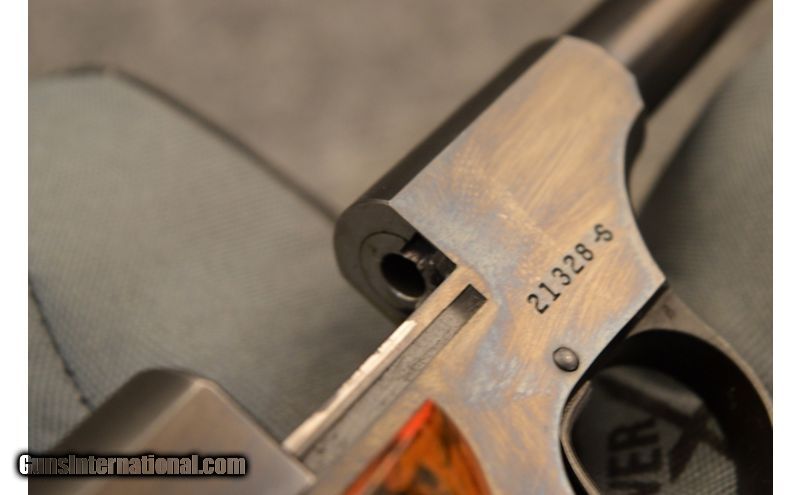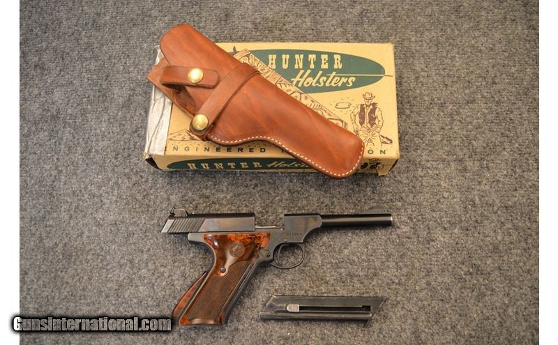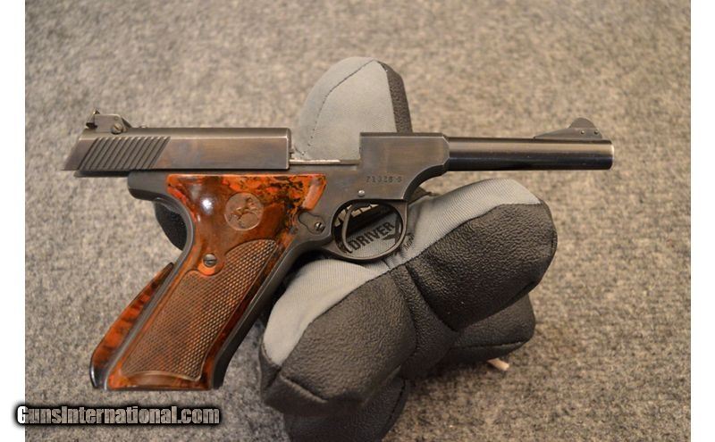 Description: Colt Woodsman 2nd Series Target pistol (1947-1955). This example was built in 1948 but remains in overall excellent condition. 4 1/2" barrel, bright, excellent bore, original sights and original thumb rest target grips. This Colt shows 97% bright original blue and correct original mag. A collector grade Colt. .22 Long Rifle SOLD Chambers: .22 Long Rifle Metal Condition: "Very good, slight wear at muzzle Bore Condition: Excellent Barrels: 4 1/2 Weight: 1 Lb. 15 Ozs. Sights: "Open sights, adjustable rear Item Location: Albuquerque, NM |