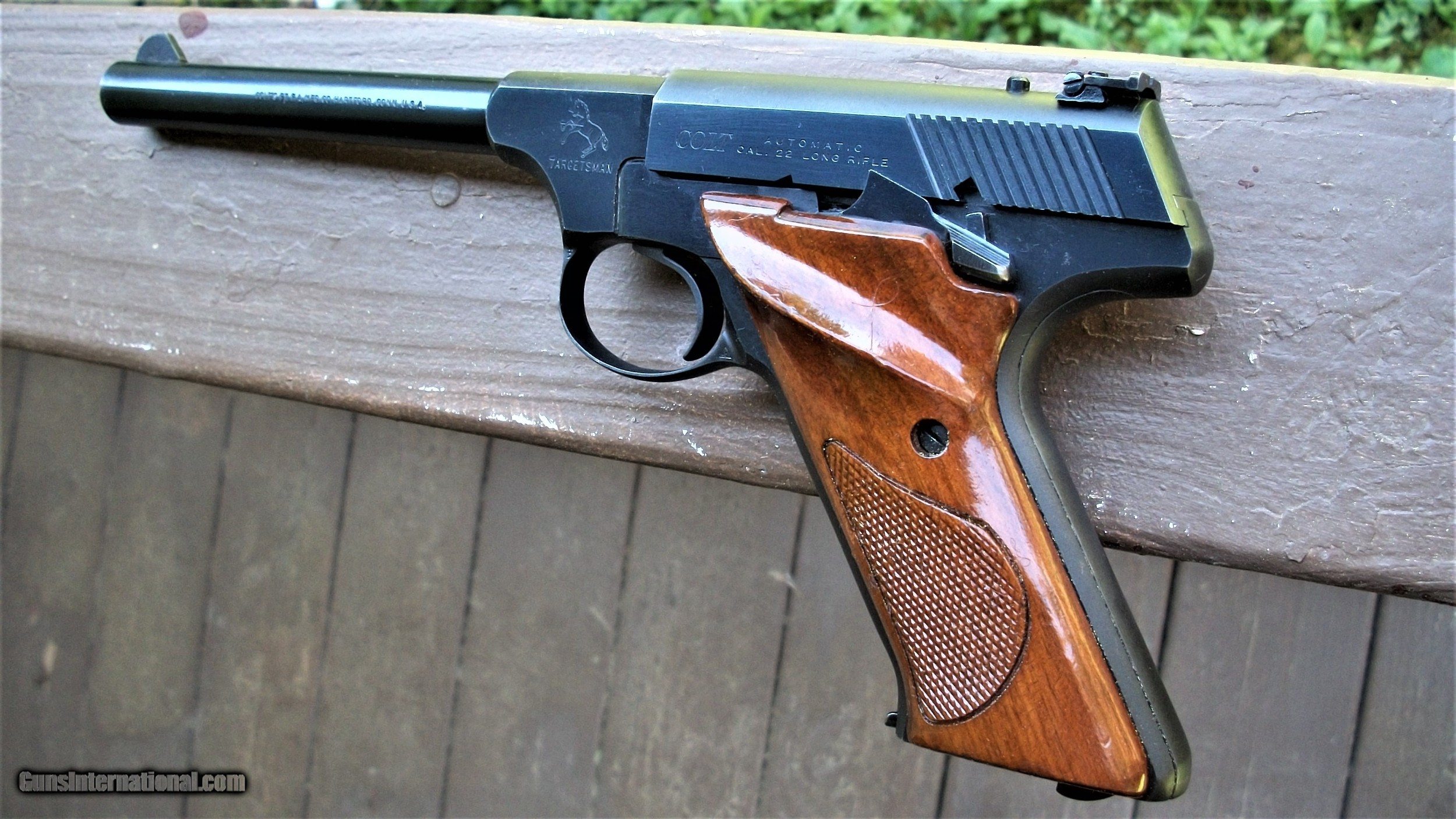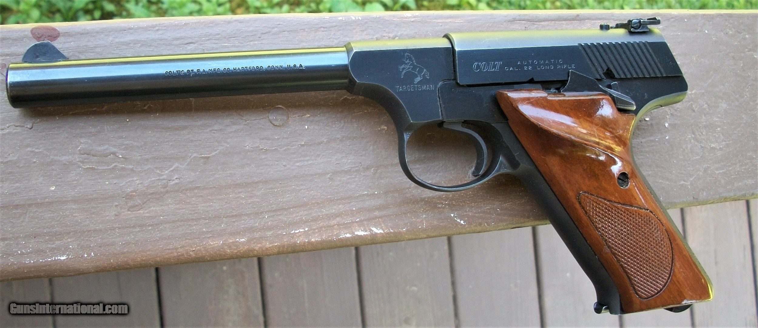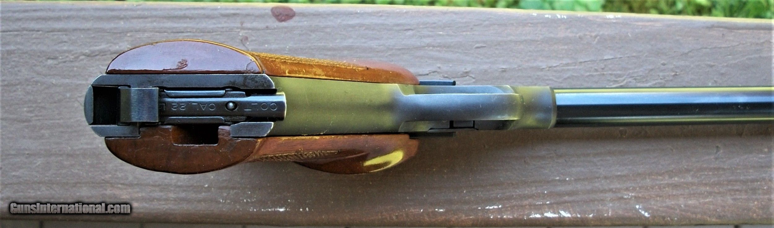 Description: This is a real nice Colt Targetsman of the Woodsman 3rd series manufactured in 1972. The gun is in very good condition with minor dings in the grips and some finish lost on the front and rear of the grip frame.. Bore is excellent. 6" barrel.. Has the original colt magazine. Ships by priority mail for $20.00 . Must be sent to FFL dealer. All used guns sold as-is. SOLD Handgun Caliber: .22 Long Rifle |