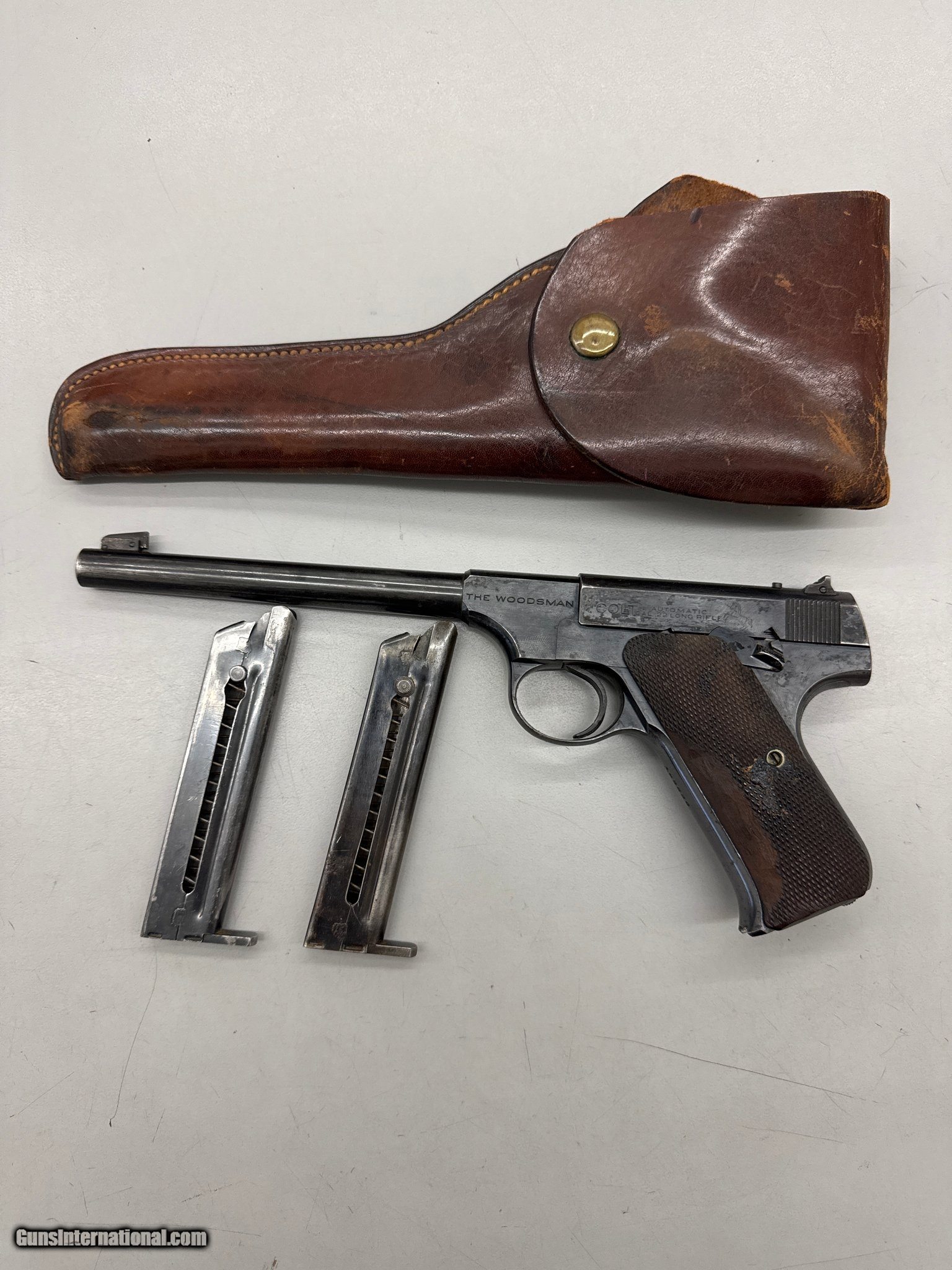 Description: Guns Listing ID: 469119 This Colt comes with 2 magazines and a leather holster. SOLD Manufacturer: COLT Model: the woodsman Condition: Used - Non-Certified Barrels: 6.6 Gauge Info: .22 LONG Finish: wood grips/blued steel |