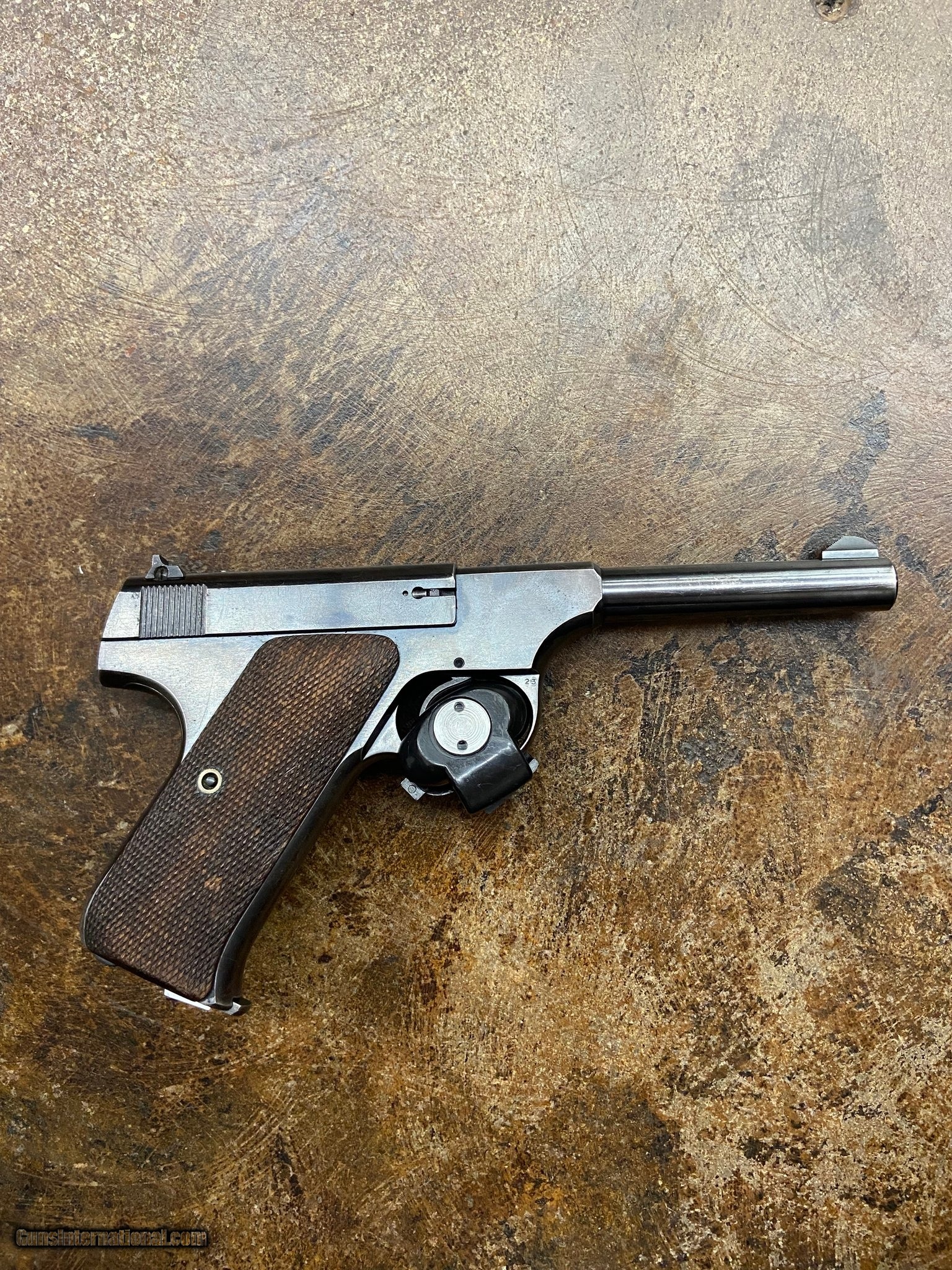 Description: Guns Listing ID: 1357144 Semi Auto hand gun 4 1/2 inch long barrel. Comes with one magazine. SOLD Manufacturer: COLT Model: THE WOODSMAN Caliber Info: .22 LR Condition: Used - Non-Certified Barrels: 4 BARREL Finish: WOOD GRIPS/BLUED STEEL |