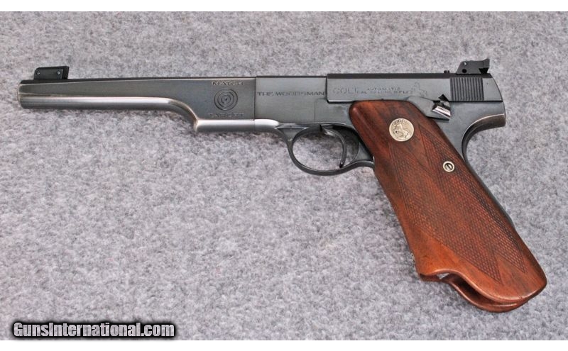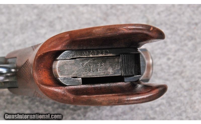 Description: The Colt Woodsman is a semi-automatic sporting pistol manufactured by the U.S. Colt's Manufacturing Company from 1915 to 1977. It was designed by John Moses Browning.This Woodsman is a first series in very good condition. SOLD Manufacturer: Circa 1939. Caliber Info: .22 LR Metal Condition: Very good with some wear on edges. Wood Condition: Excellent Bore Condition: Bright and shinny. Barrels: 6 5/8 in. Butt Pad: Excellent, walnut "Elephant Ear". Weight: 32 Oz. Sights: Adjstable rear and front. Extras: With 1 magazine. Item Location: Billings, MT |