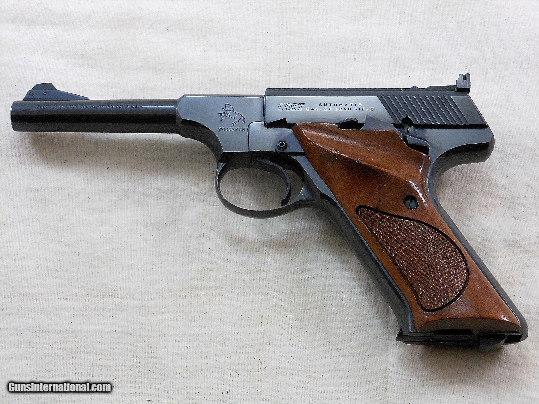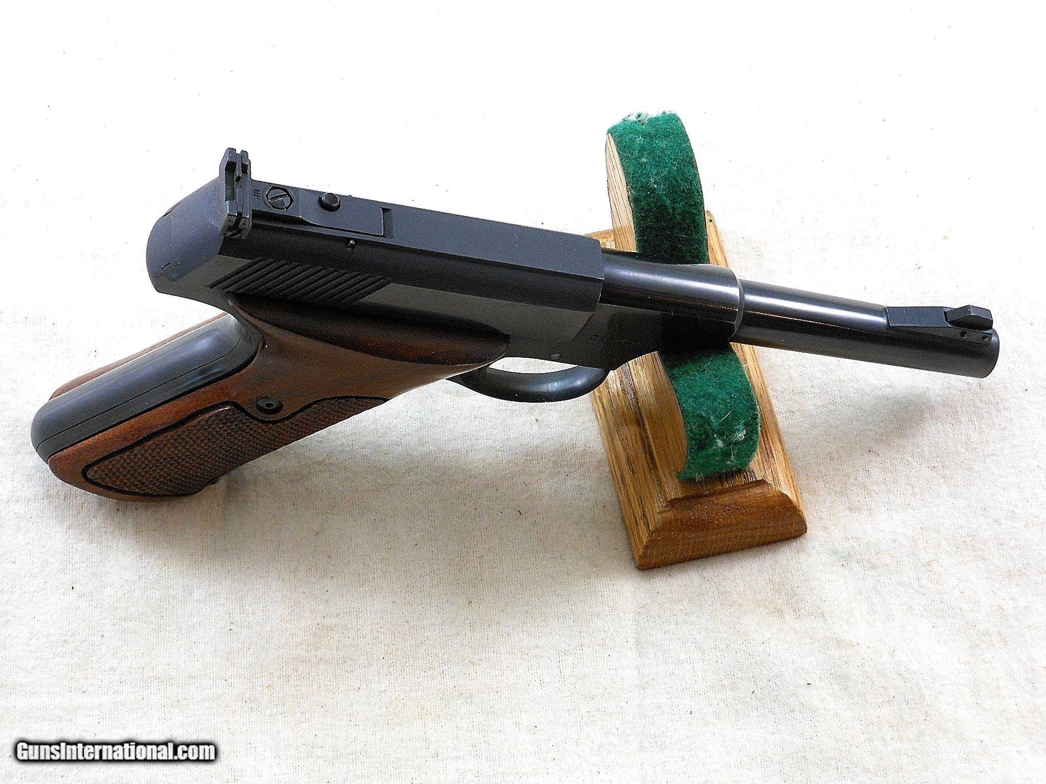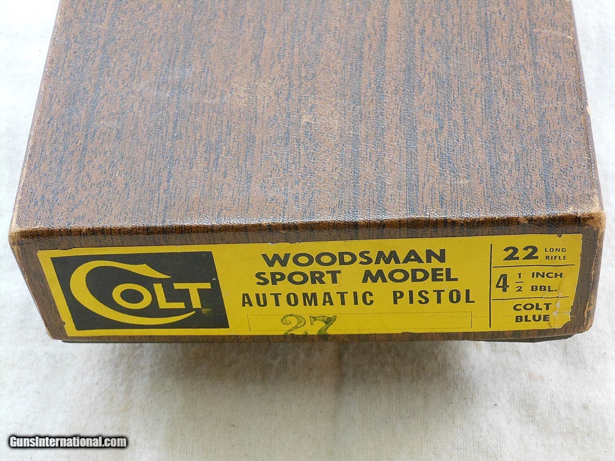 Description: This Colt was produced in 1976. The pistol's serial number is 097496-S. This pistol has the 4 1/2 inch barrel. It has the fully adjustable rear sight. This pistol is as new and unfired. The box is serial numbered to the pistol. It comes with the cleaning rod and oiled waxed wrapping paper for the pistol. Also included is the shooting suggestions pamplet and the service stations listing. The box label is sharp and clear. The underside of the box has the serial number in white grease pen. The original wood grips are in new condition with no dents or pressure points. This is a stunning "new" Colt that has not been played with or used. This pistol would certainly appeal to the Colt collector of new in the box pistols! search for hlvfineguns on google for more details. Modern J.M.C. Consn. (2) F. No. 437 -19 SOLD Manufacturer: Colt Model: Sport Model Woodsman Serial Number: 097496-S Caliber Info: 22 Long Rifle Chambers: Minty Condition: New Metal Condition: New Wood Condition: New Bore Condition: New Barrels: 4 1/2 Inch Barrel Type: Round Action: Self Loading Finish: Blued Sights: Target Rear sight Manufacture Date: 1976 Case: Original Box And Papers |