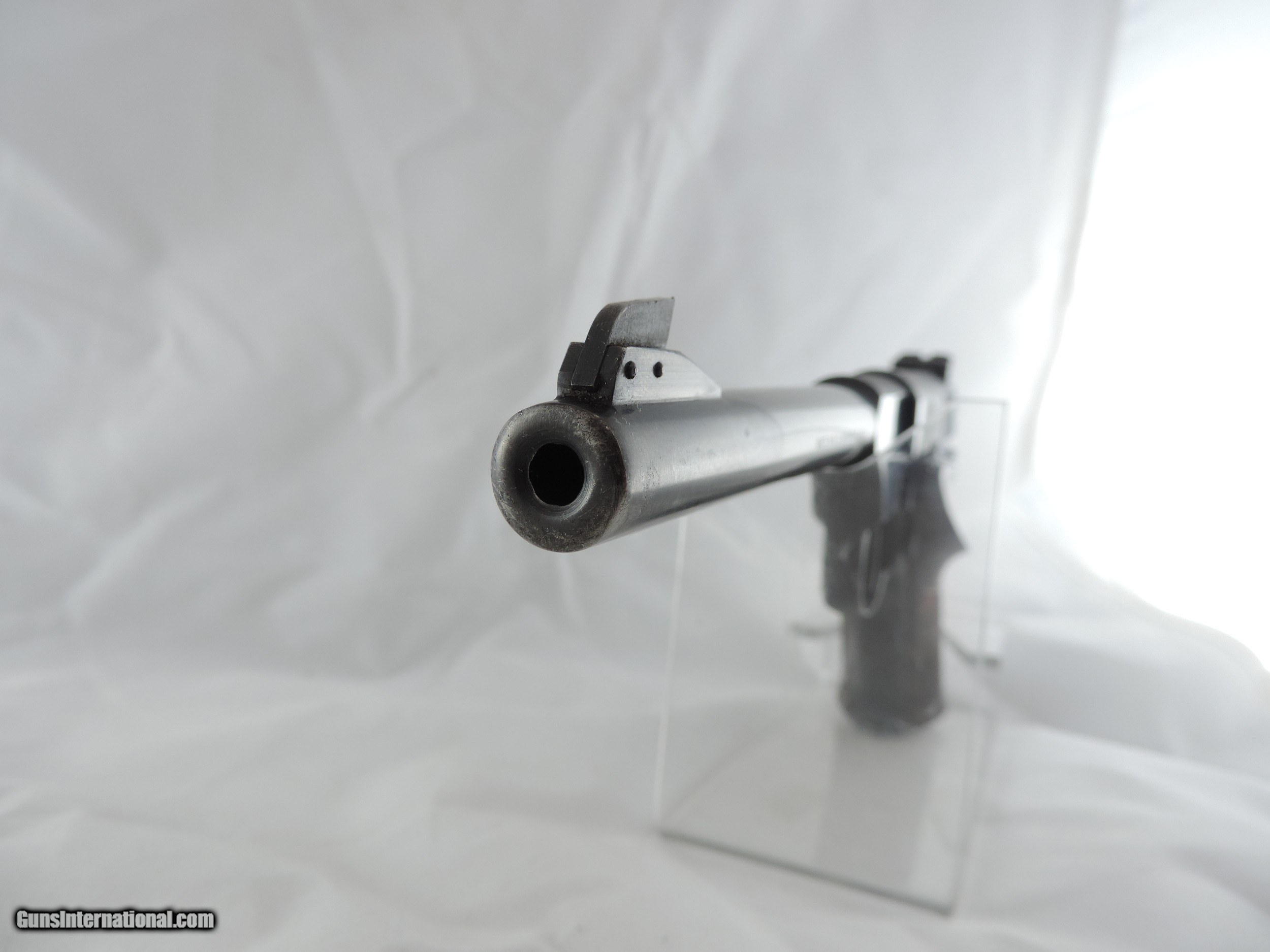Description: Inv. 7565 Colt Woodman, Cal 22LR, Ser. 110014-S, Mfg. 1957 "Attic Queen" that the estates heirs brought in was almost to pretty to shoot. The gun retina about 98+% of the original factory finish. The tiny loss there is,is from the very slightest sharp edge silvering and 3 tiny dings on the rear of the slide. There are no rust spots, pin pricks or rub marks anywhere. The gripstraps have no sign of graying. All parts are correct and function perfectly. The mottled brown plastic thumb rest grips are flawless. The bore is as pristine as the gun. The bore is mirror bright with razor sharp rifling, without a trace of frost. It comes with one correct Colt magazine. This "Attic Queen" is a great find for the collector/investor and should be awesome on the range. Only.....SHIPPED..... $1195. To purchase this firearm or if you want to request more information contact us at: Email ckguns[at]ymail[dot]com Phone 201-512-0002 Cell 201-575-6838 FAX 201-215-4759 We accept most major credit cards. Prices shown are Discounted 3% for Cash or Check. The buyer must be familiar with all the laws governing the purchase and the ownership of firearms in their own city and state. The Yankee Armorer, Inc is not responsible for any failure to comply with or observe these laws. The Yankee Armorer, Inc will only ship after full payment and receipt of all required documents. Shipping: Add $35.00 for handguns, $45.00 for long guns. New Jersey buyers are subject to a 7% sales tax. The Yankee Armorer, Inc offers a 3 day inspection period with full refund upon return of intact firearm and in the original condition. The Yankee Armorer, Inc offers a no interest lay away program - 25% down; 25% in 30 days; 25% in 60 days; and full payment in 90 days. Any violation of this policy is subject to restocking and forfeiture of all payments. Any variation from this policy must be agreed to in advance. Unshipped Cancelled sales are subject to a 20% restocking fee. Be advised that all firearms sold by The Yankee Armorer, Inc. or the Gun Exchange, LLC (SELLER) are sold as collector’s items. They have not been fired or tested for safety and must be examined by a license gunsmith prior to use. By purchasing any item from the (SELLER), you are agreeing to hold the (SELLER) free from any damages or lawsuits of any nature. Any item left for transfer or storage will be charged to $25.00 per month, per item from the day of its receipt. Any variation from this policy must be agreed to in advance. Store hours 10:00 am to 5:00 pm Tuesday -Saturday. It's always best to call for appointment. Store 201-512-0002, cell 201-575-6838. SOLD Curio/Relic: Yes Manufacturer: Colt Model: Woodman Serial Number: 110014-S Caliber Info: .22 LR |