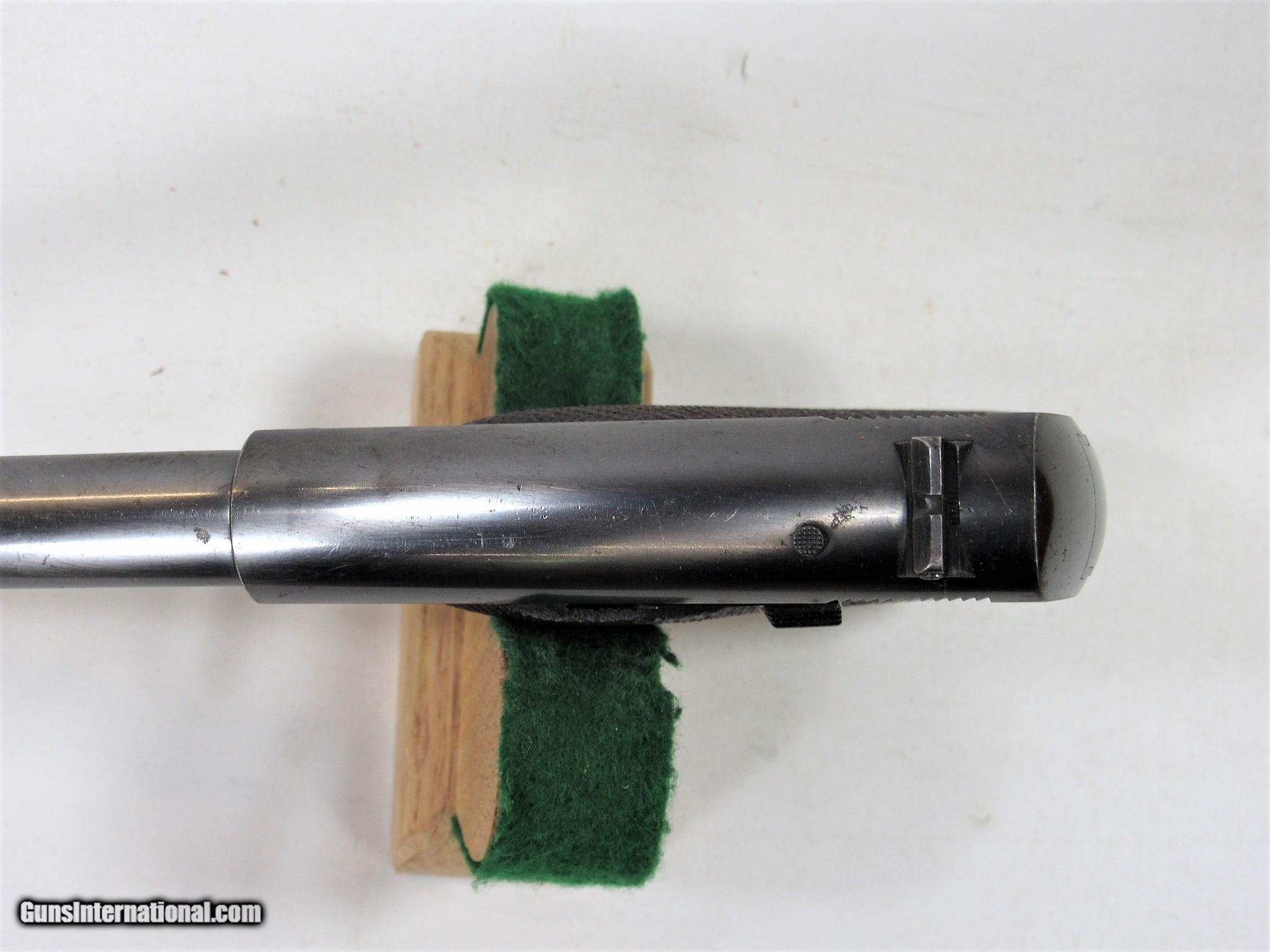 Description: COLT WOODSMAN 1ST MODEL SPORT 6”. 97% WITH A LITTLE SCATTERED FRECKLING. NICE GRIPS, EXCELLENT BORE, ORIGINAL 2 TONE CLIP. MADE IN 1927. SOLD Curio/Relic: Yes Handgun Caliber: .22 Long Rifle |
