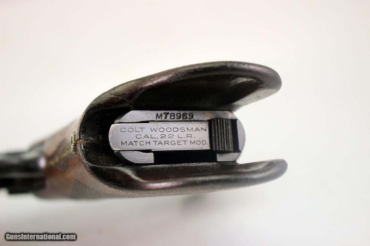 Description: We are offering for sale a very early COLT Woodsman MATCH TARGET semi-automatic pistol chambered in .22LR caliber. This is a FIRST SERIES pistol manufactured in 1940. Pistol is in highly collectible condition and remains very attractive with minimal handling wear. 6.75” barrel remains very good with about 95% bluing. Bore is clean with strong rifling. There is some light wear on either side where barrel meets frame. Frame is very good retaining the majority of original bluing; crisp marks. Both barrel and frame have factory matte top edge. Semi-auto action functions flawlessly! Original elephant ear grips have a couple repaired cracks; Wonderful patina to the wood. Original OEM magazine included; Heel release. HIGHLY COLLECTIBLE FIRST SERIES COLT WOODSMAN MATCH TARGET!! $35.00 Shipping ***** PLEASE NOTE WE ONLY ACCEPT MASTERCARD AND VISA AS PAYMENT OPTIONS (We charge a non-negotiable 3% cc fee) ****** Maker: Colt Model: Woodsman Match Target Caliber: .22LR SN#: MT 8969 Action: Semi-automatic Barrel Length / Condition: 6.75”; Very Good with light wear Slide Condition: Very Good with light handling wear Frame Condition (ie. Bluing, Engraving, etc.): Very Good with light handling wear Sights: Fixed front, rear target sight Trigger/Trigger Guard: Very good Grip: Original Elephant Ear grips VG with repairs Magazine (1) factory magazine Magazine Release: Heel release PLEASE LOOK AT ALL PHOTOGRAPHS FOR CONDITION WE ONLY ACCEPT MASTERCARD AND VISA CLOSED MONDAYS AND TUESDAYS Please know the legality of any weapon in your state before . If we are unable to transfer the gun we will charge a 15% re-stocking fee. If the gun is returned for any reason, there will be a 12% restocking fee. Also, we are a PART TIME business. Our business hours are WEDNESDAY, THURSDAY, FRIDAY & SATURDAY 10-3. If you make an offer on Saturday night we may not get back to you for 24+ hours, please send us an email with any questions, and we will do our best to get back in a timely manner. Thank You. We are not a shop open to the public, no private viewings. We stand behind our descriptions, and gladly take returns, however we know based on the descriptions given, you will not be disappointed. No Face To Face Transfers! Please note: Clicking "buy" does not guarantee that this gun is yours, However clicking “Buy” will reserve this gun for you, if it hasn’t been sold in store. We will try to do our best to remove the posts as efficiently as possible, but sometimes delays may ensue. “Buy” is your safest bet to reserve a gun. Also please add 6.25% MA state sales tax (if from MA) and 3% credit card shop courtesy fee. After Clicking “buy” we will need the following from you, via email before we ship. 1: A copy of your preferred FFL’s license via email () 2: Your preferred method of payment (If Credit card: 16 digit, MM/YY exp date, 3 digit code Plus billing address) 3: Your Shipping information/ Your preferred FFL’s Shipping information. You have 5 business days to arrange payments and ffl information to us. Any purchase not completed within this time frame will be cancelled, and the ad will be put back active online. Please before calling with concerns read these conditions and meet them accordingly. Shop Phone (508) 835 5400 SOLD Curio/Relic: Yes |