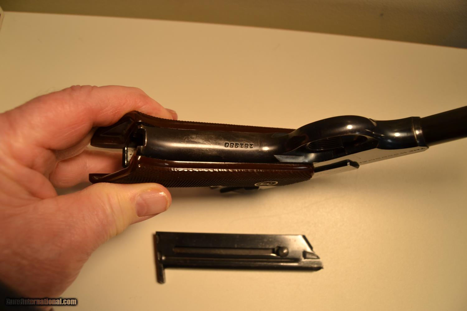 Description: COLT WOODSMAN 22 PISTOL MADE IN 1942, BLUEING IS ABOUT 85%, THERE ARE SOME USE MARKS. SIGHTS ARE ORIGIONAL, GRIPS ARE ALSO. COMES WITH ONE MAGAZINE. EVERYTHING WORKS PROPERLY. IF YOU HAVE CUURIO LICENSE IT CAN SHIP DIRECT TO YOU. IF NOT I NEED A EMAIL WITH YOUR INFO AND YOUR GUN DEALERS INFORMATION AS WELL PLEASE INCLUIDE TELEPHONE NUMBERS. ASK YOUR DEALER TO FAX ME A COPY OF HIS FFL AND TELL HIM I WILL SEND A COPY OF MY PA DRIVERS LICENSE AND MY CIRIO LICENSE WITH THE GUN. IF YOU CHOOSE A DEALER WHO REQUIRES SHIPPING FROM A FFL DEALER ADD $30.00 FOR THE ADDITIONAL SERVICE. SHIPPING IS 50.00 FEDEX INSURED. SOLD Curio/Relic: Yes Manufacturer: COLT Model: WOODSMAN Serial Number: 181380 Caliber Info: 22 Bore: BRIGHT & SHINNEY Metal Condition: 85% Wood Condition: NONE Bore Condition: VG Barrels: 6 INCH Barrel Type: ROUND Action: SEMI AUTO Triggers: VG |