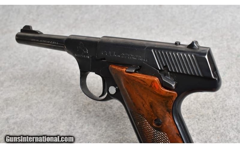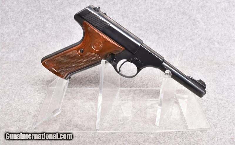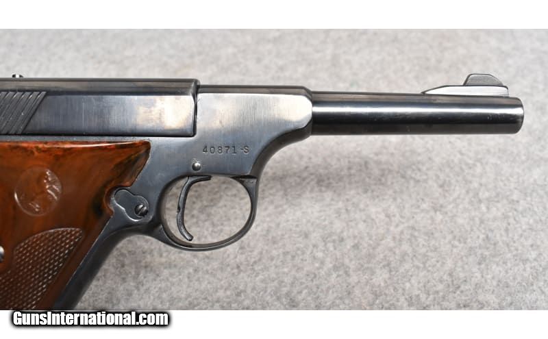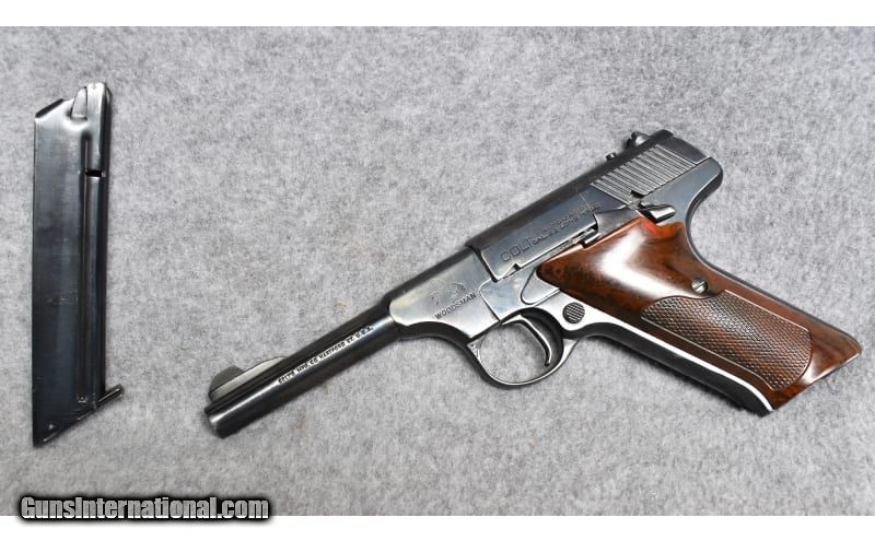 Description: This Colt Woodsman is in great condirtion with really nice bluing and slight holster wear at the end of the barrel. This handgun will make an excellent addition to your collection and will also be a very fun plinking gun. We believe this model to be manufactured in 1949 which for referance, puts it about a year before the Korean War. The action is very smooth and is followed by a light crisp trigger break. .22 Long Rifle SOLD Chambers: .22 Long Rifle Metal Condition: Great Wood Condition: Excellent Bore Condition: Excellent Barrels: "Rifled, 4.5"" Barrel Weight: 2 lbs Sights: Front and rear iron sights Item Location: Billings, MT |